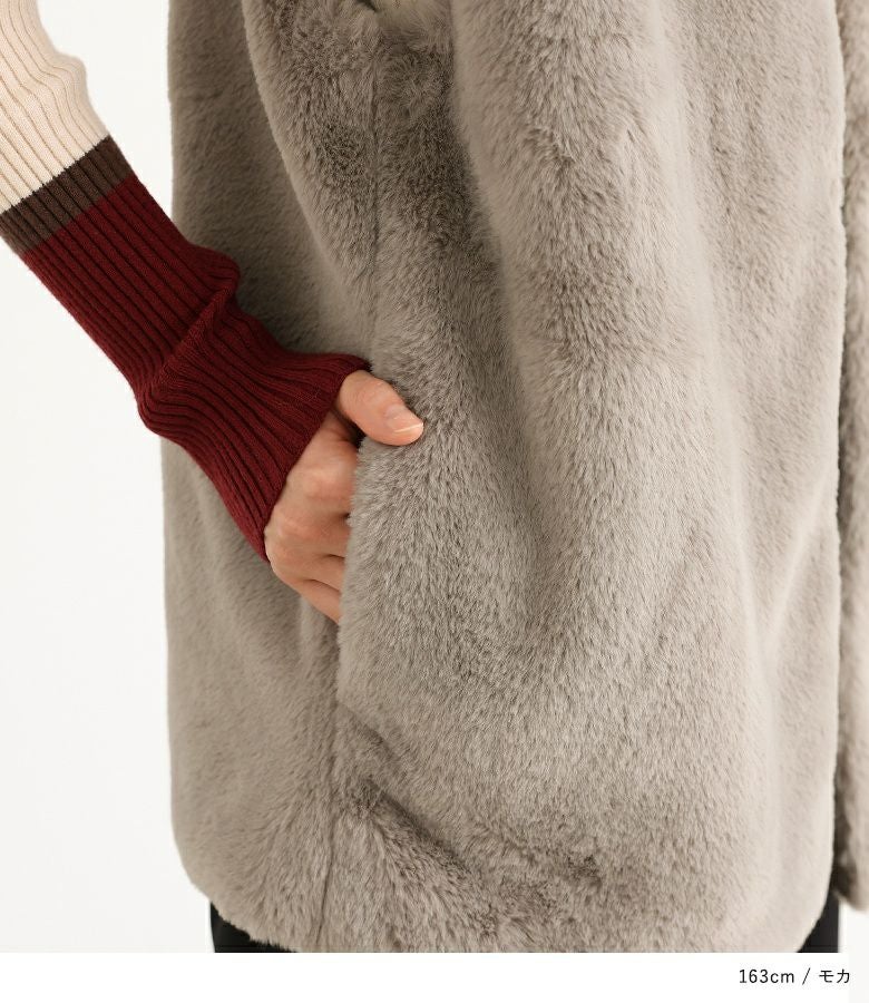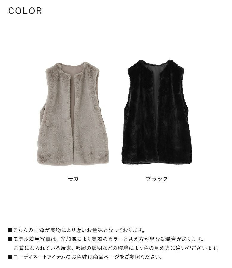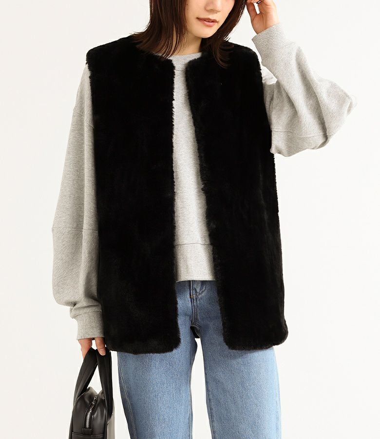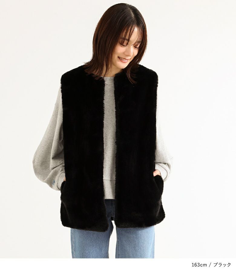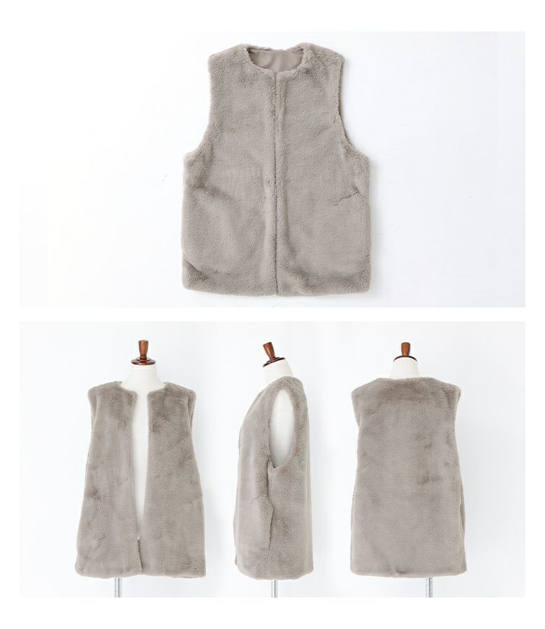 肌寒い時期のスタイリングに活躍するフェイクファージレ。