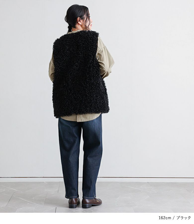 ふんわりとしたプードルフェイクファーが印象的なベスト。一枚羽織るだけでコーディネートが決まり、お洒落見えを叶えます。着丈もしっかりとあり、お尻まわりを自然にカバーしてくれるバランスの良いシルエットです。両サイドにポケットが付いているのも嬉しいポイントです。