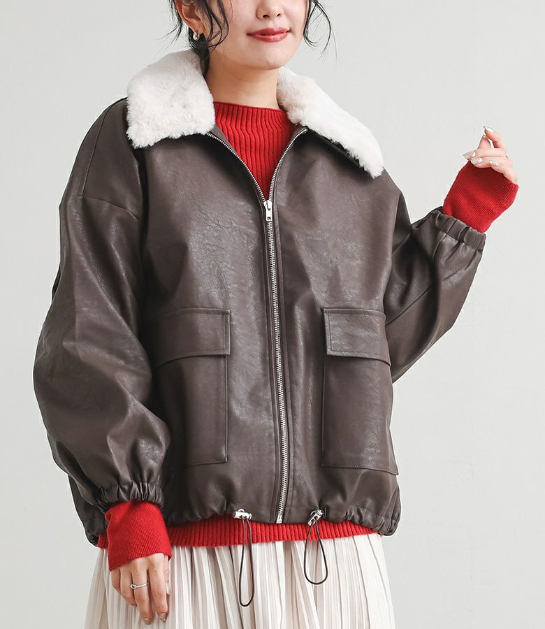 『フェイクファー衿付きブルゾン』