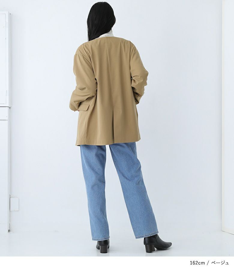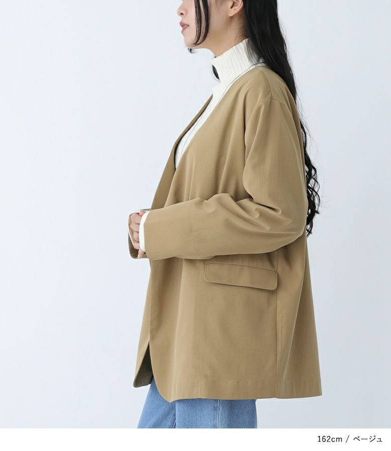ノーカラーですっきり見せが叶うVカラージャケット。
