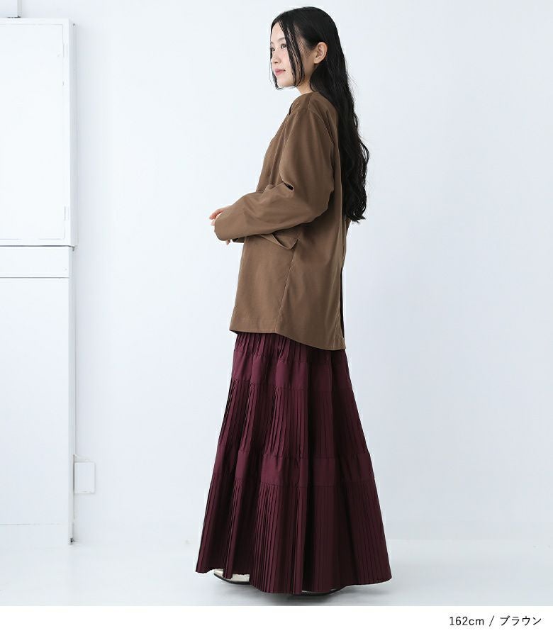 きれいめからカジュアルまで、幅広いスタイルに対応できる一着。ブラウスやシャツと合わせてきちんと感のある着こなしはもちろん、カジュアルなパンツと合わせてもバランス良く決まります。