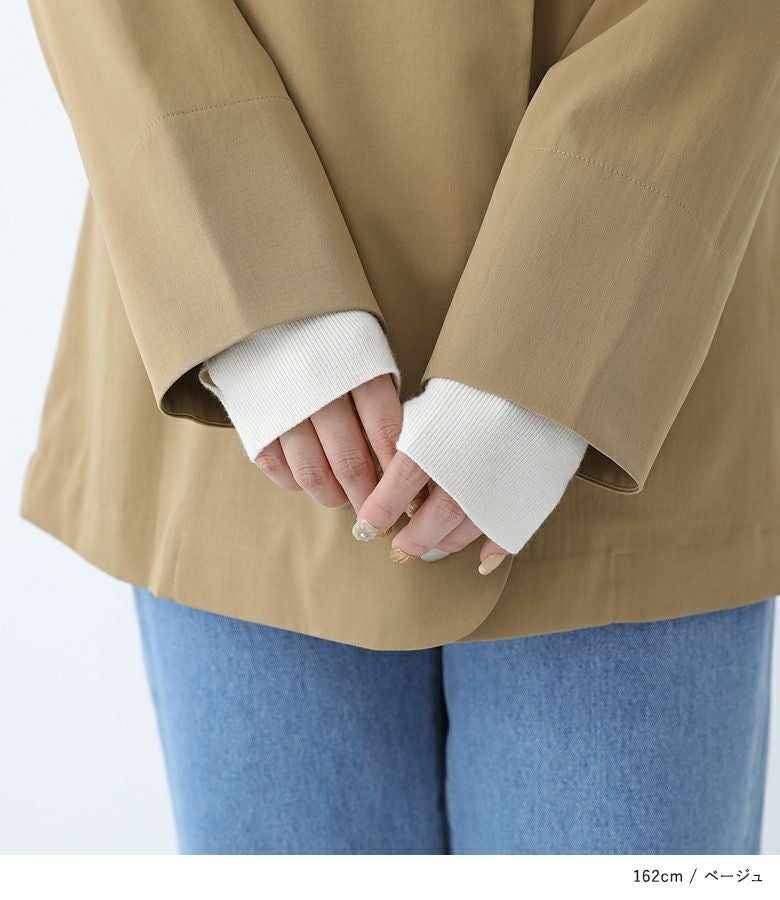 上品な微光沢が魅力のツイル生地を使用。軽やかな着心地で、季節の変わり目から長く活躍する素材感です。