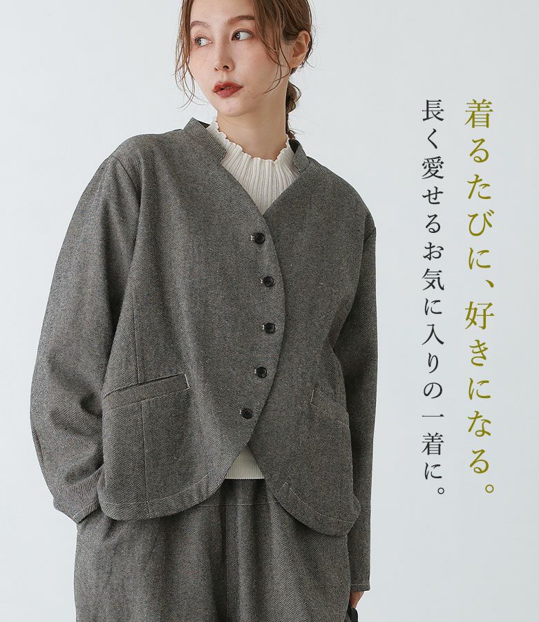 『30%OFFセール★OUKA SELECT綿麻先染フロントカーブジャケット』