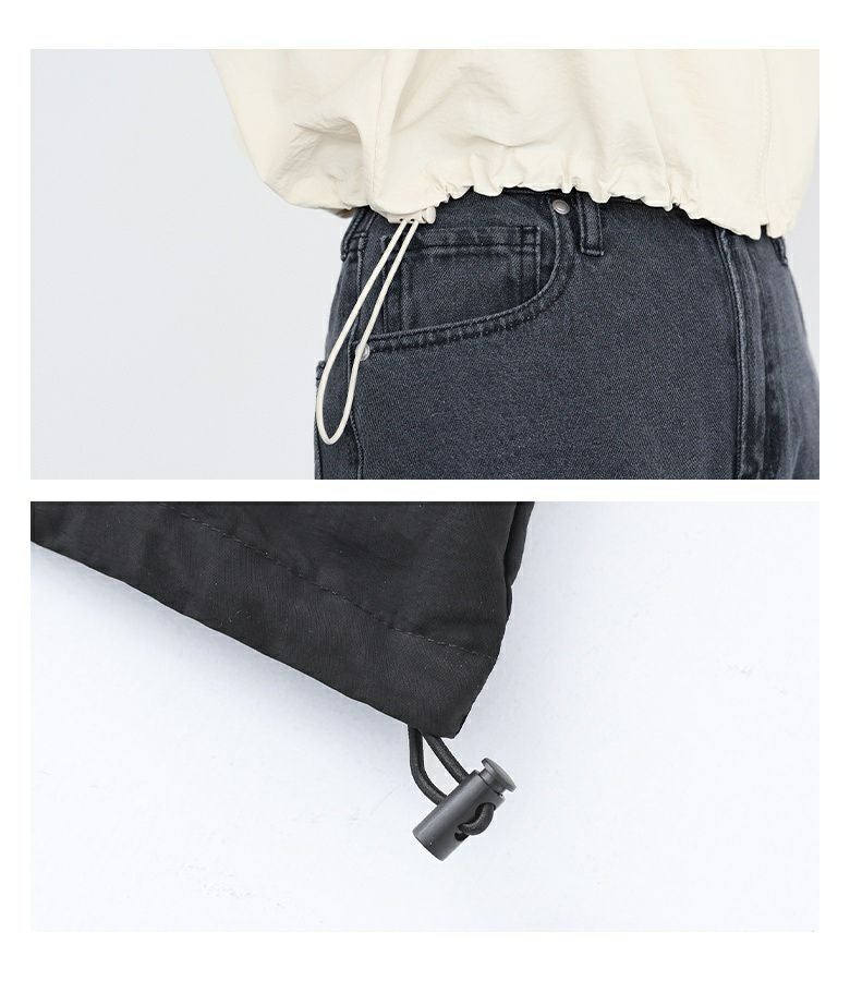 軽くて程よい厚みのナイロンワッシャー生地。マットなシャカシャカ感と、こなれ感のある風合いがお洒落な印象に導きます。