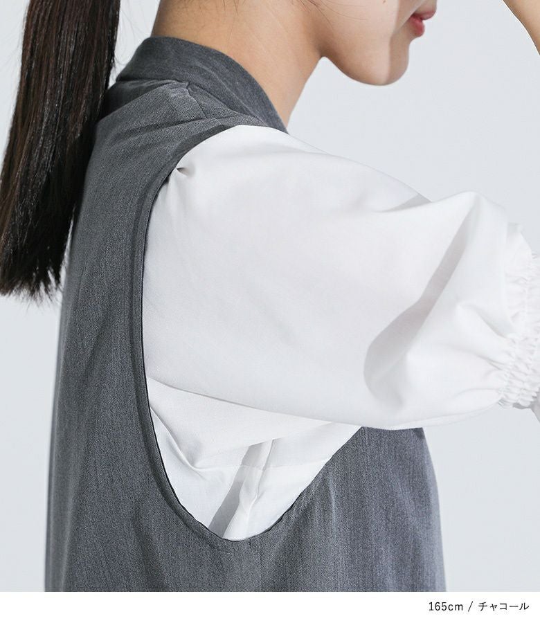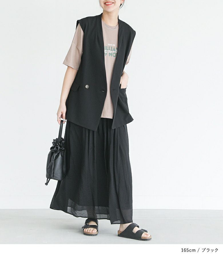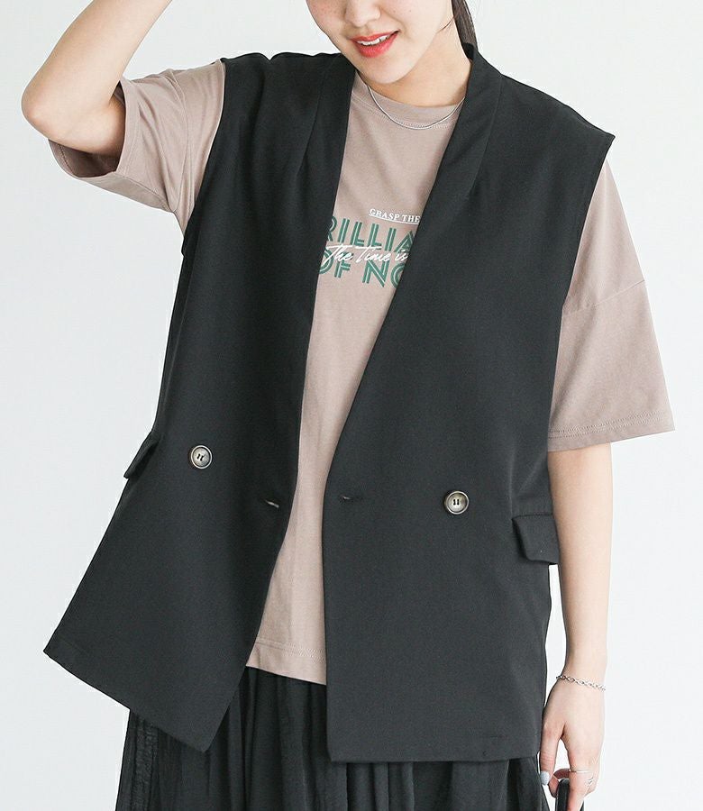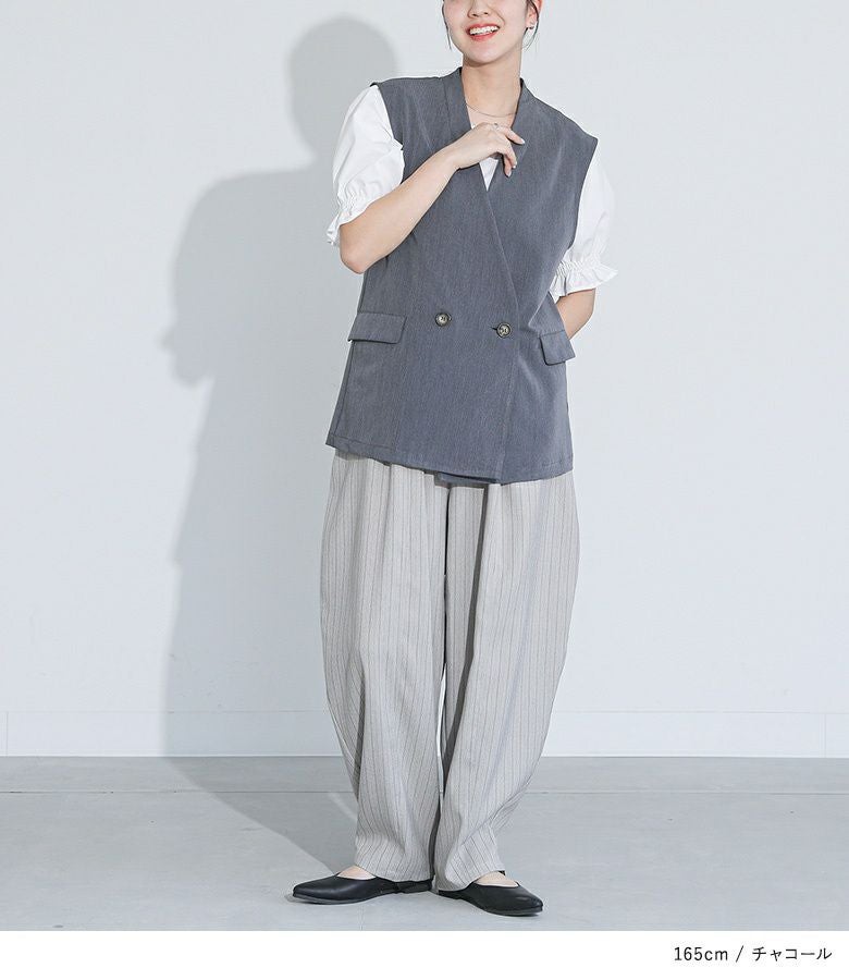 カジュアルからきれいめまで幅広い着こなしができるアイテム。アームホールが広いので、トップスを選ばずスタイリングをしていただけます。