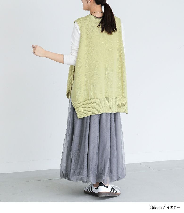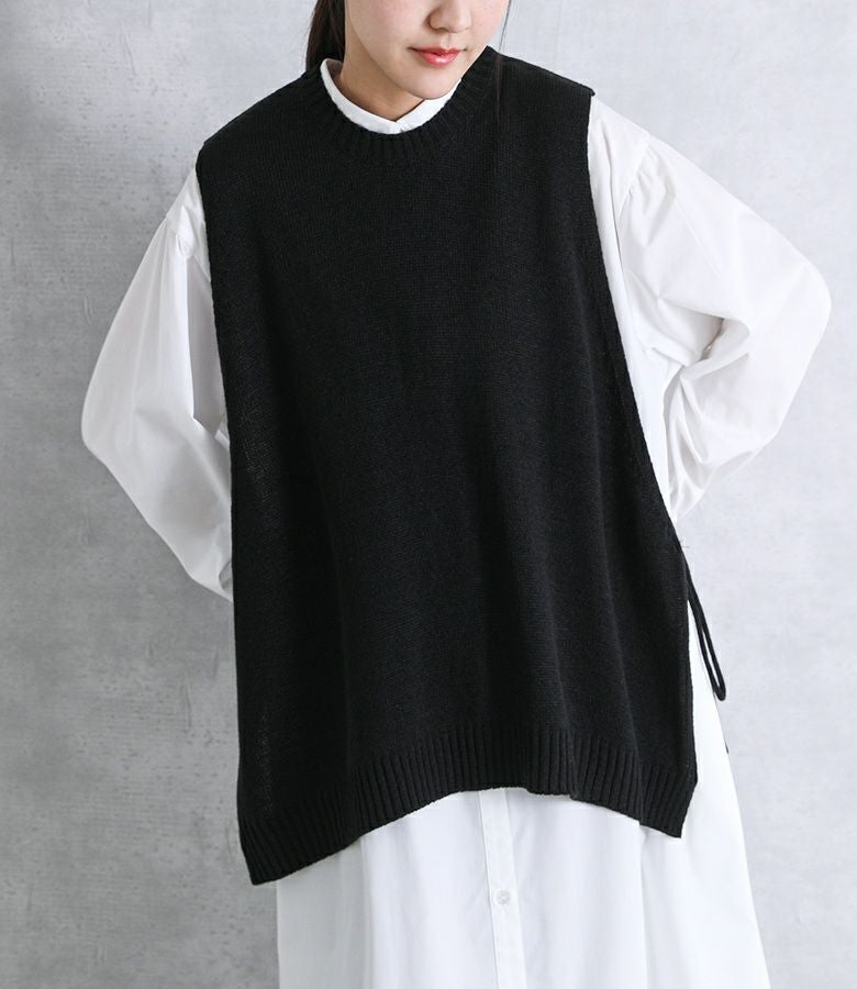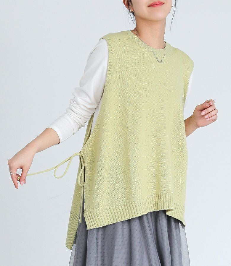 サイドリボンがポイントのニットベスト。