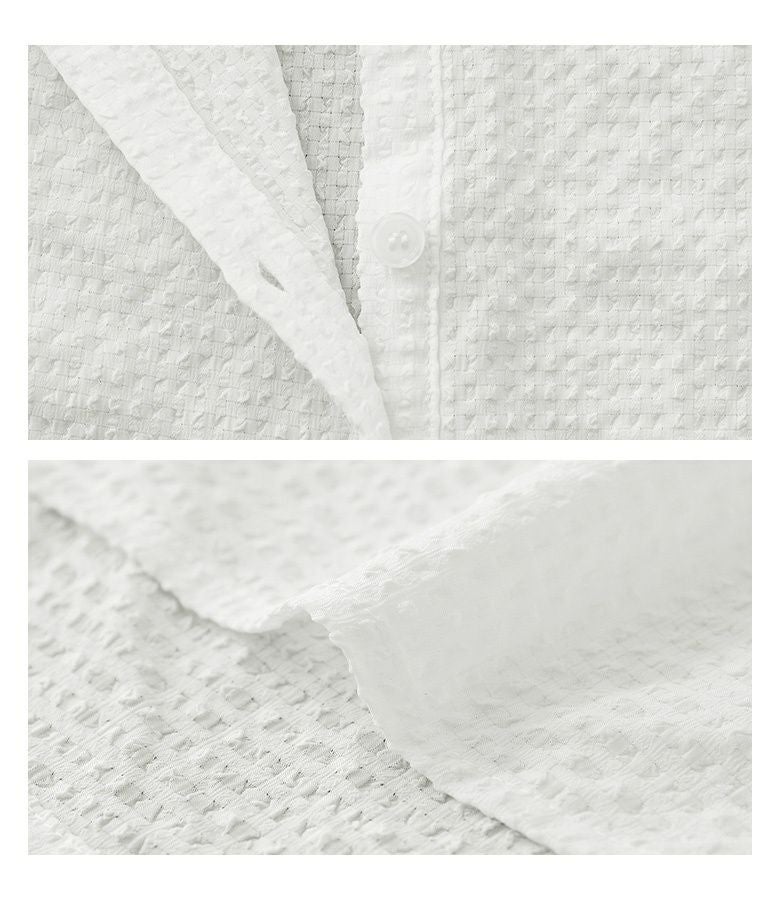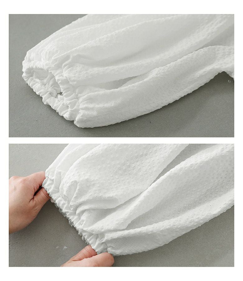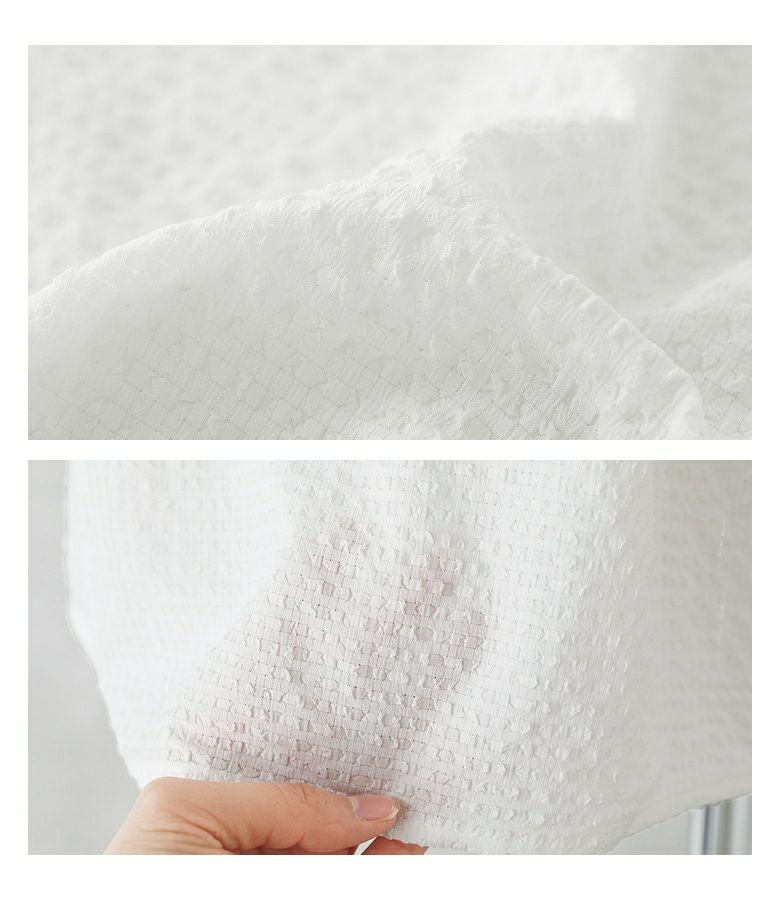 さらりとした肌触りの素材を使用。ポリエステル100%なのでシワになりにくいのもポイントです。