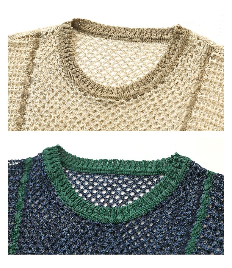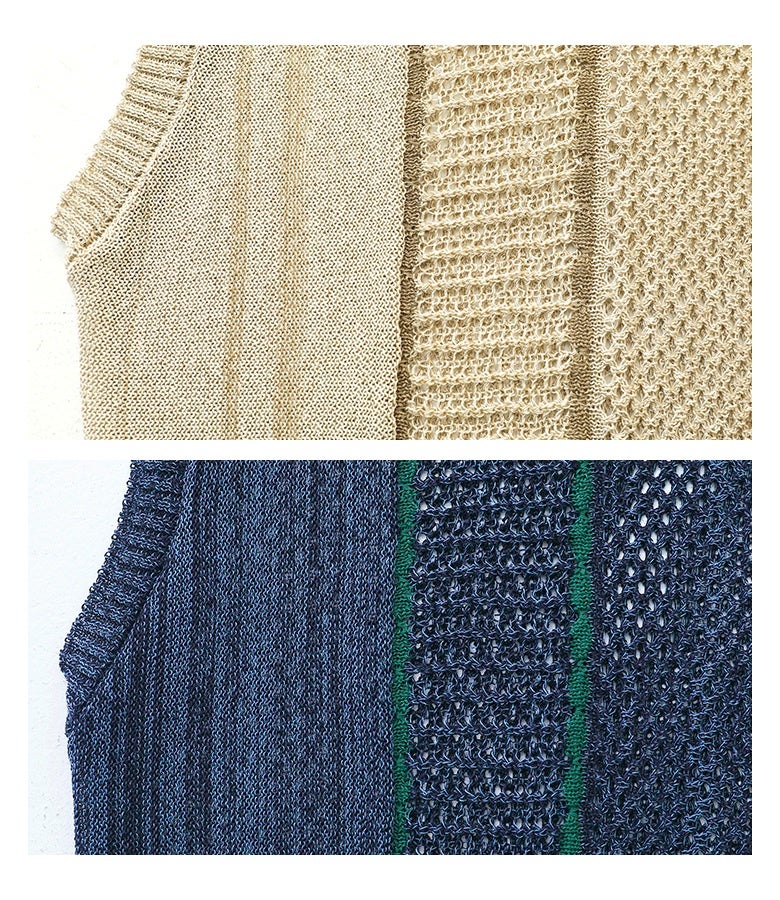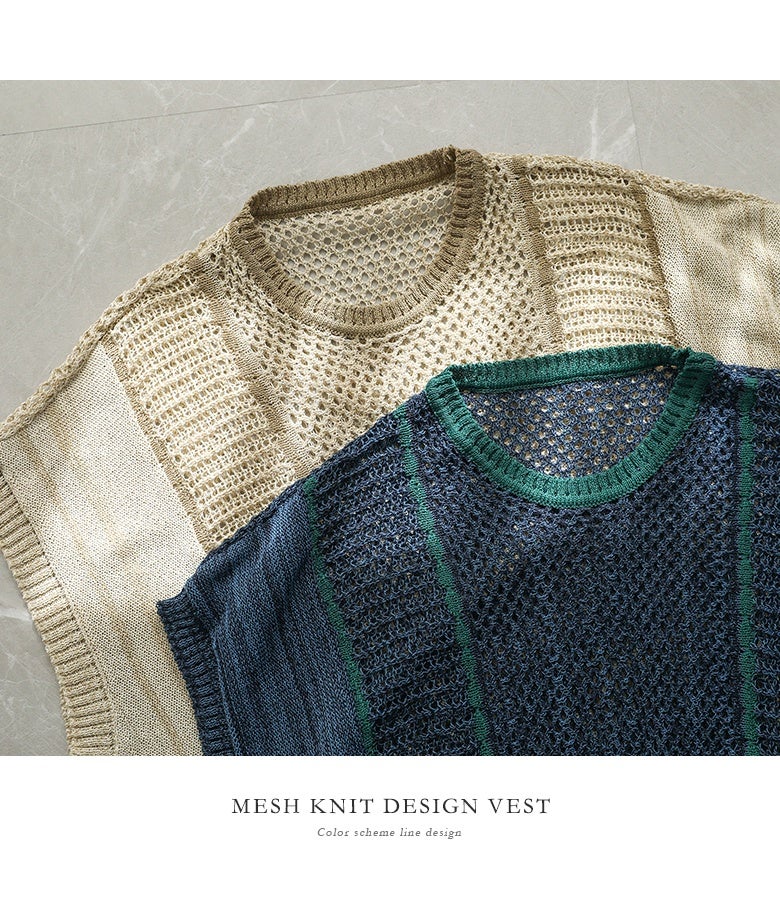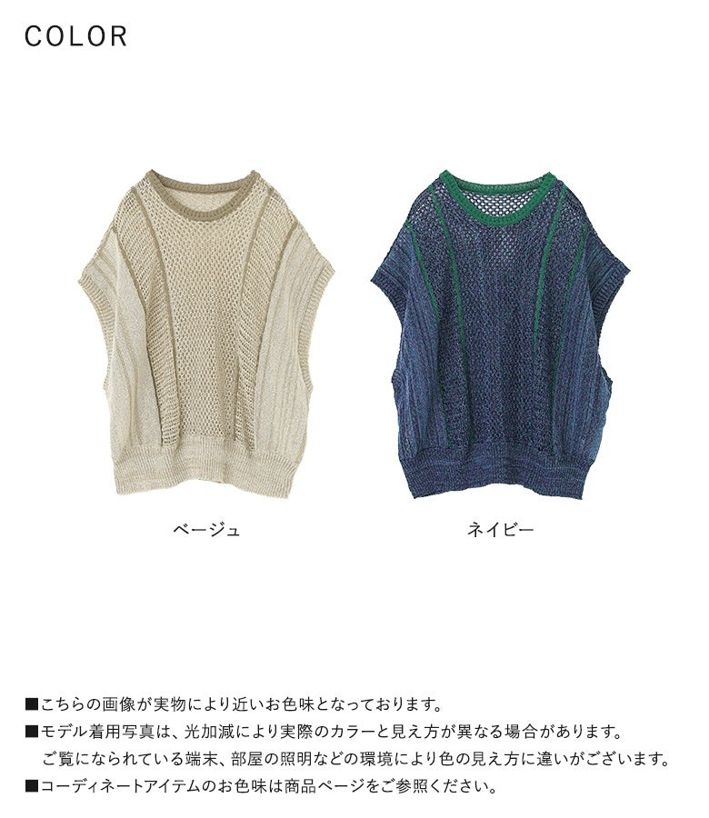 『配色LINE入りメッシュ編みベスト』