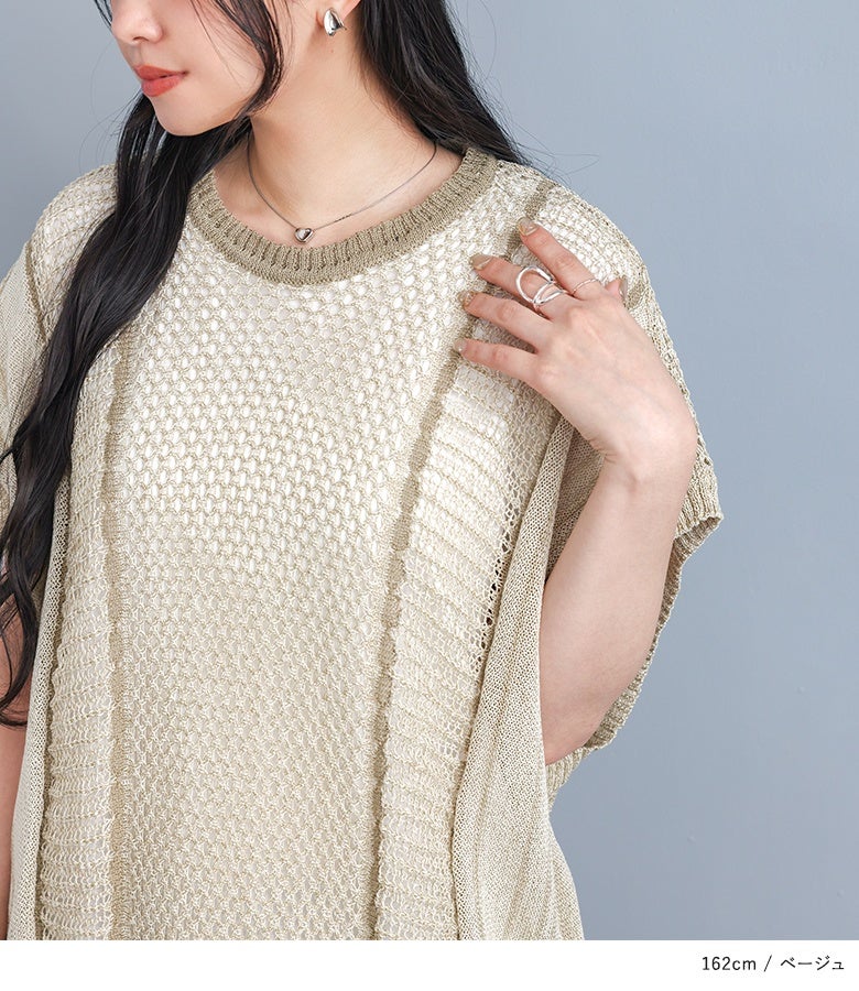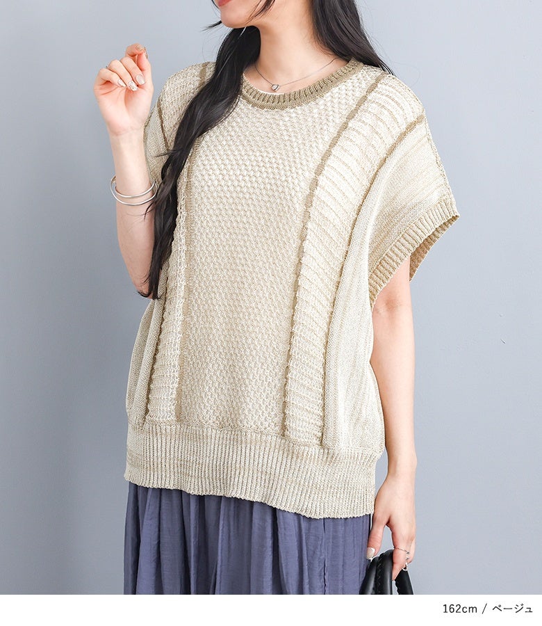 5. 『配色LINE入りメッシュ編みベスト』※メール便可※【10】
