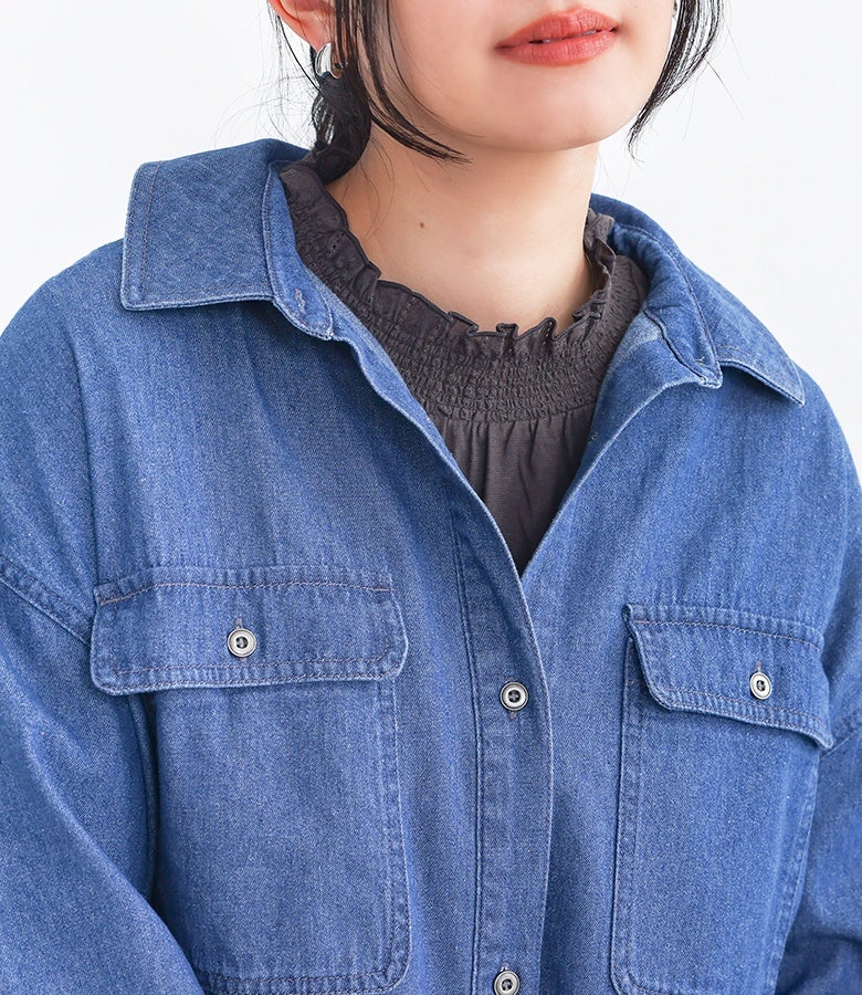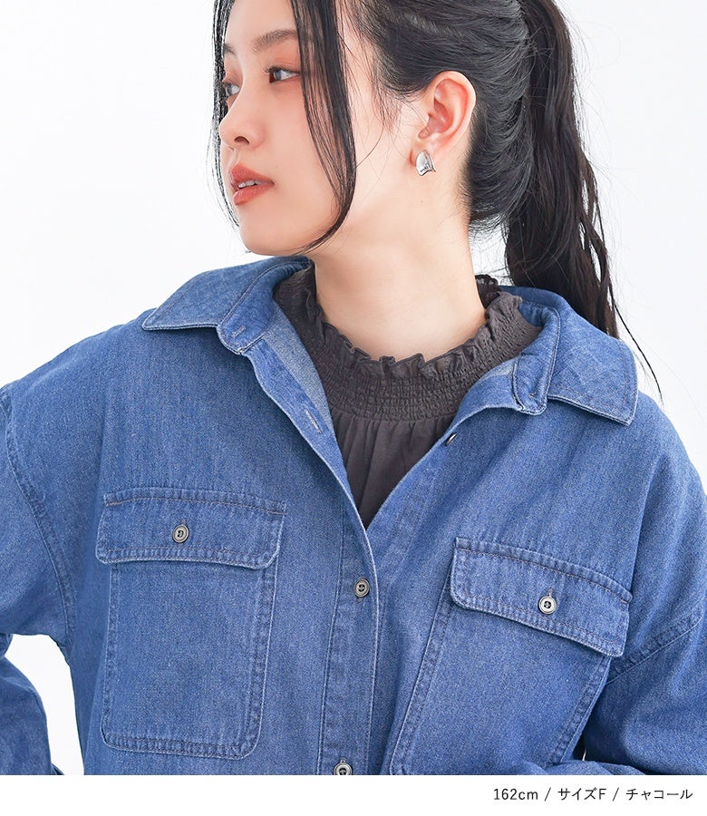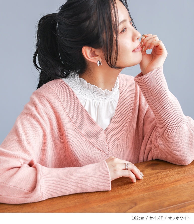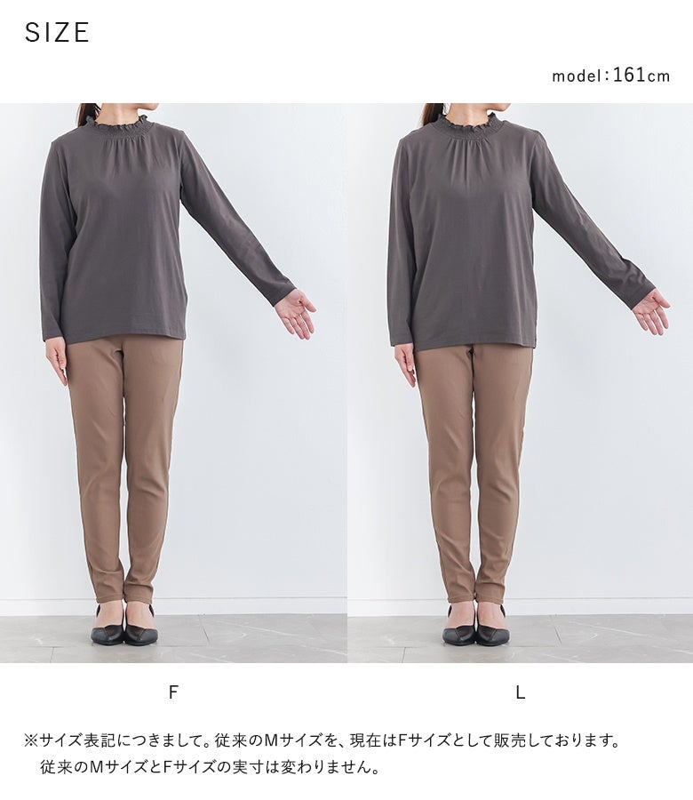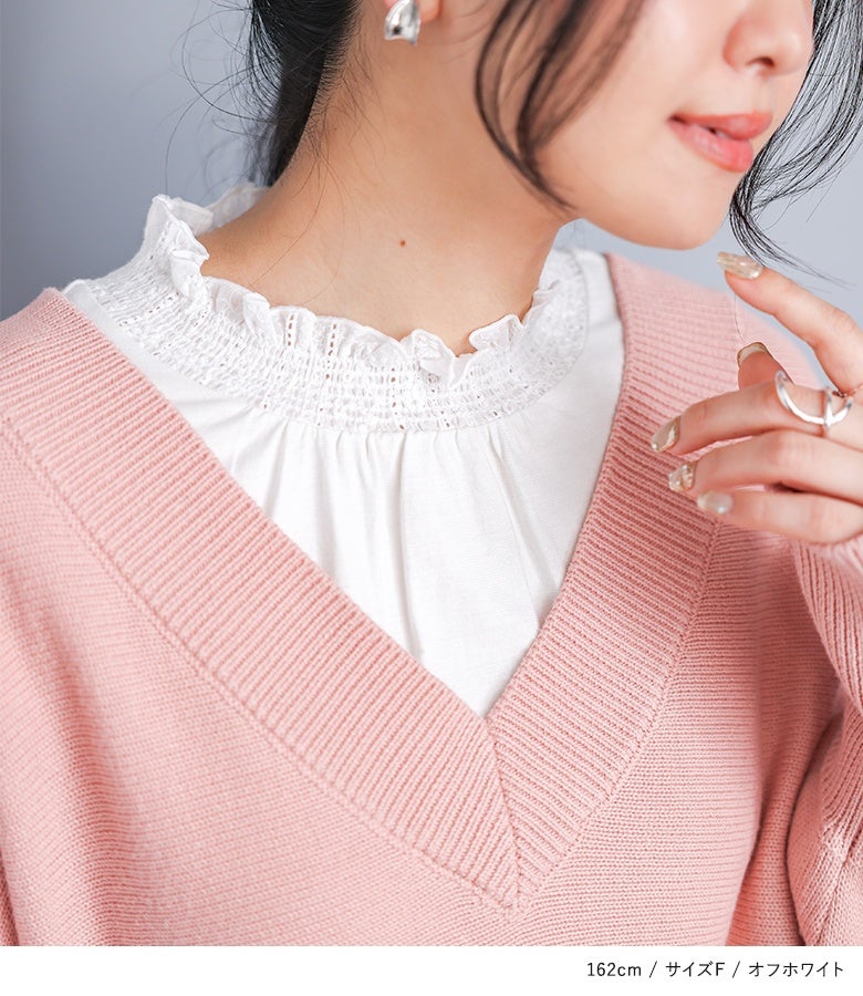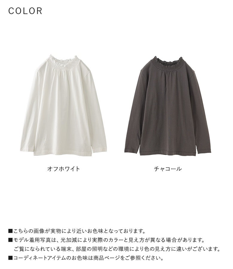 選べる2サイズ展開!コーデが見違える襟シャーリングレースフリルロンT。