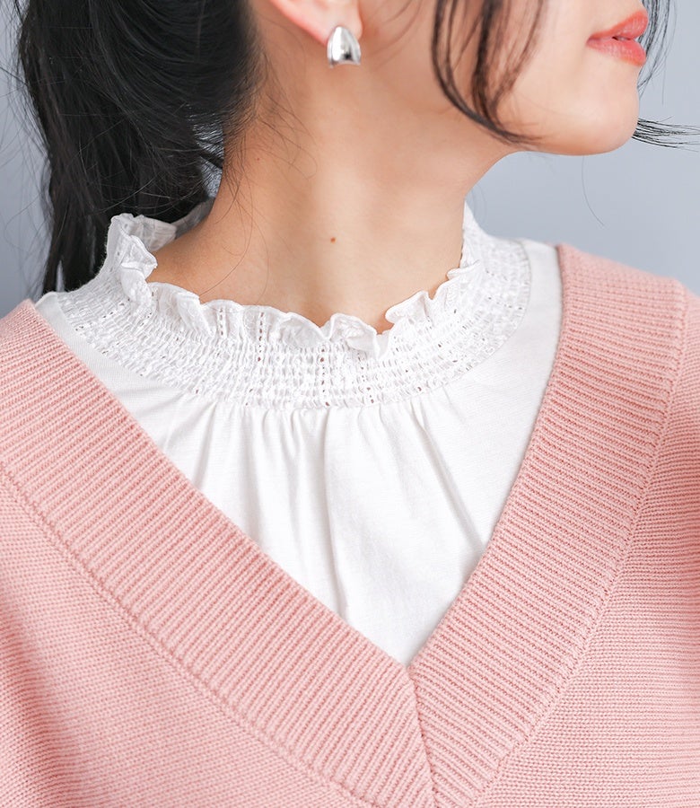 【新サイズ登場】『襟シャーリングレースフリルロンT』