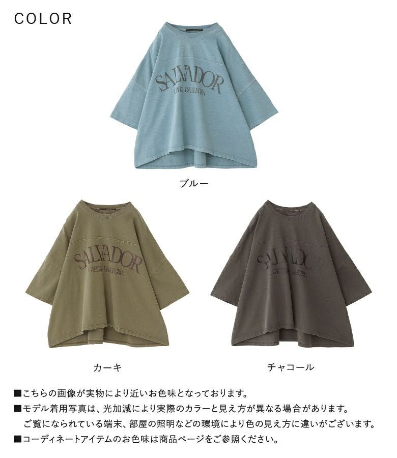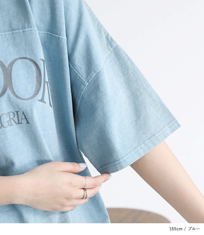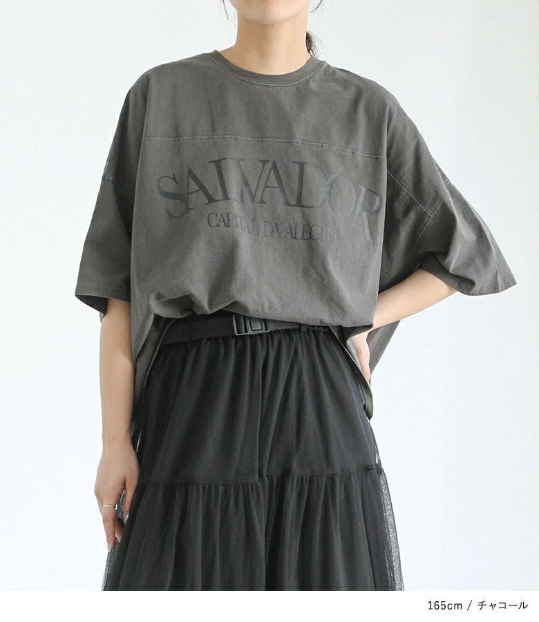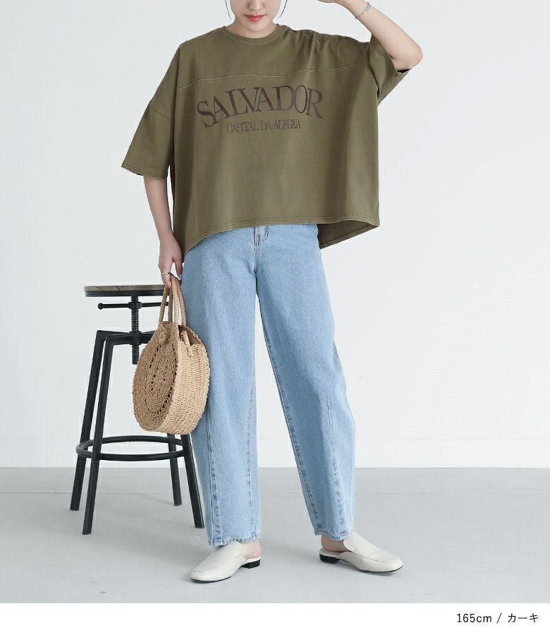 ヴィンテージ感のある生地と、主張しすぎない配色のロゴデザインが魅力的なTシャツ。ゆるっとしたサイズ感と前後差のある着丈でさりげなく体型カバーができるのが嬉しいポイントです。