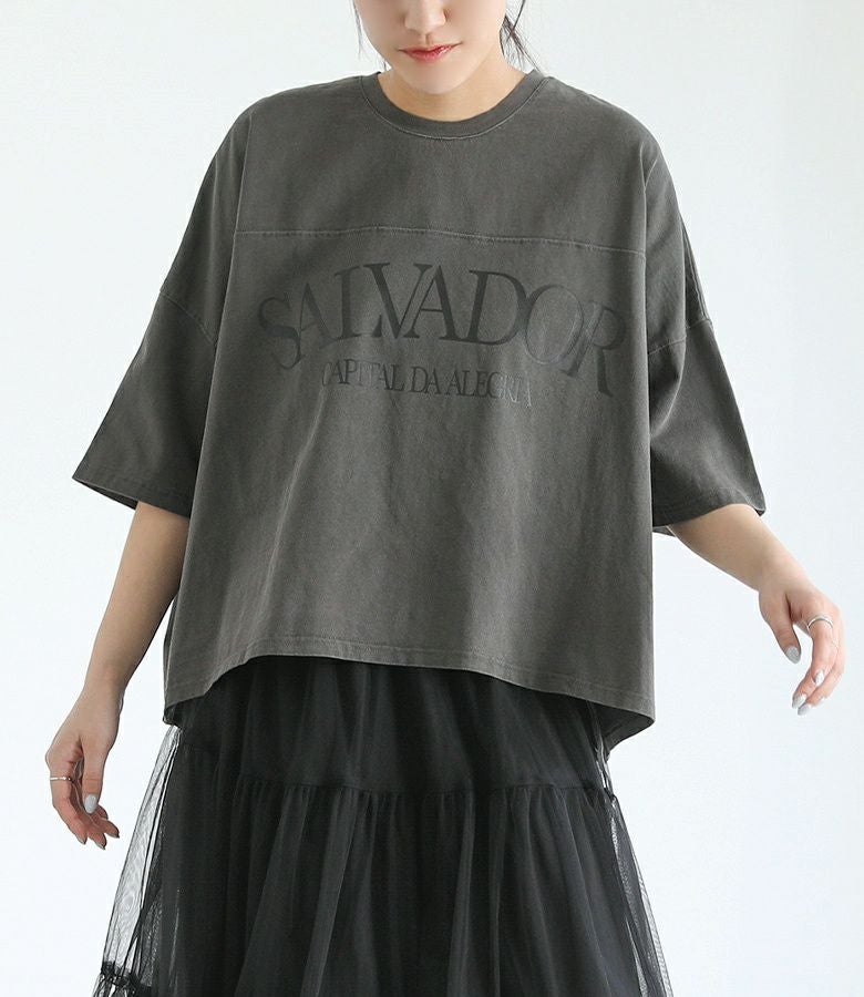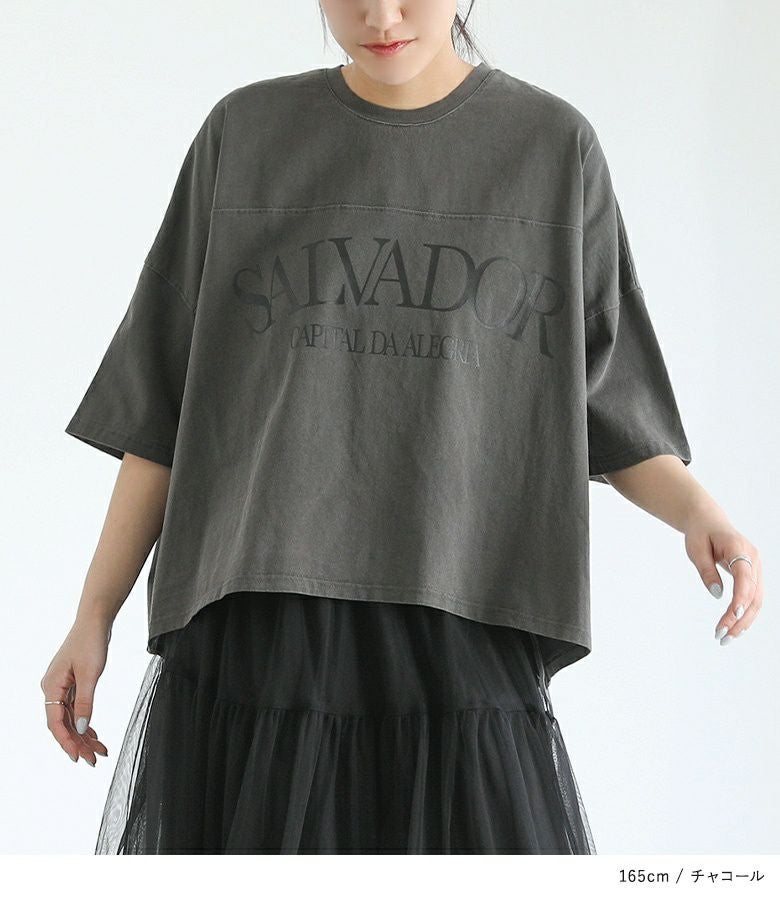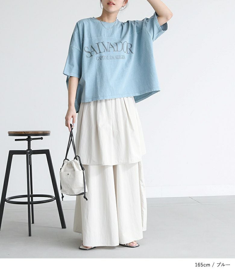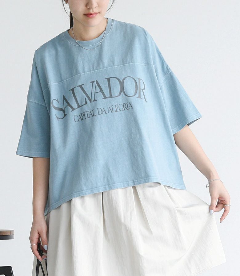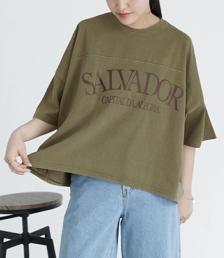 ヴィンテージ感のある生地と、主張しすぎない配色のロゴデザインが魅力的なTシャツ。ゆるっとしたサイズ感と前後差のある着丈でさりげなく体型カバーができるのが嬉しいポイントです。
