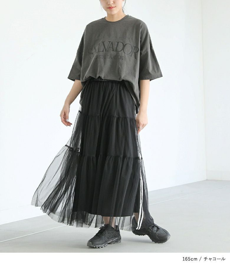 シンプルにデニムとスニーカーを合わせてカジュアルに着こなしたり、フレアスカートを合わせてもバランス良くご着用いただけます。