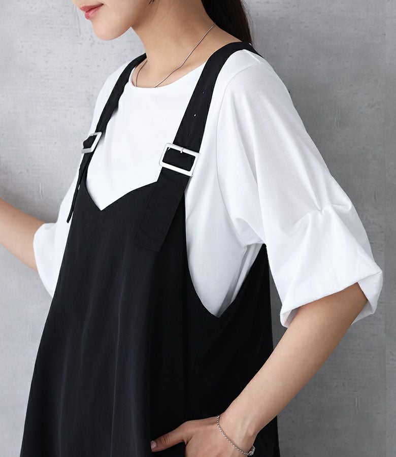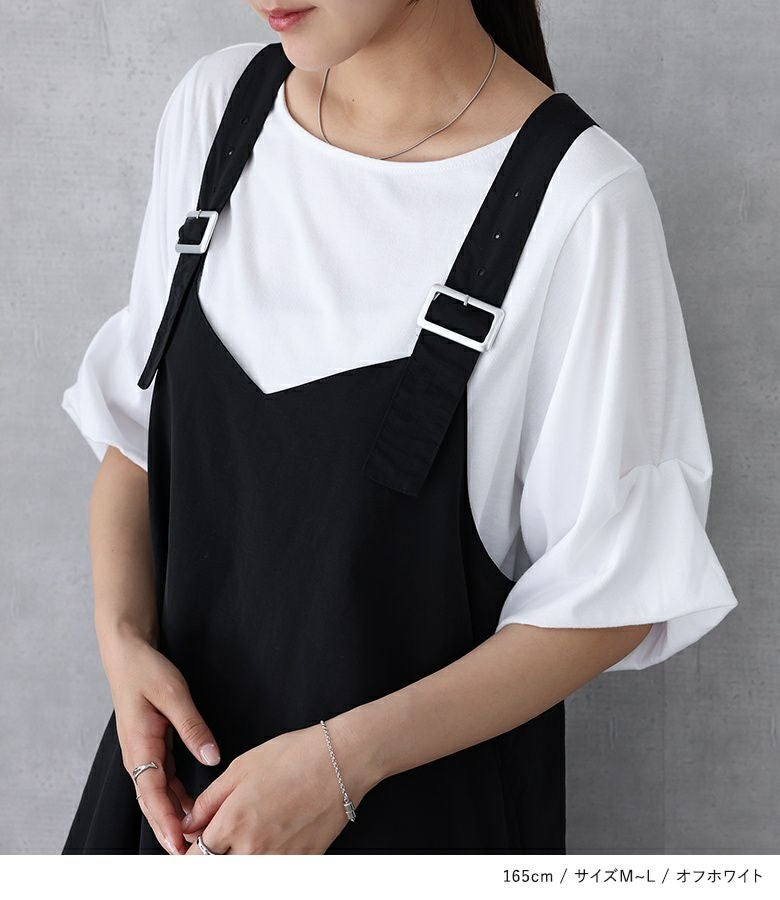 デニムなどのパンツ、スカート合わせはもちろん、サロペットのインナーに合わせて大人カジュアルにも着用いただけます。