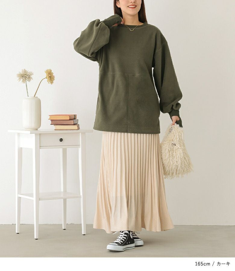軽くて暖かな着心地のボアフリース生地。適度なボリューム感のある柔らかな生地感で、寒い時期にぴったりです。