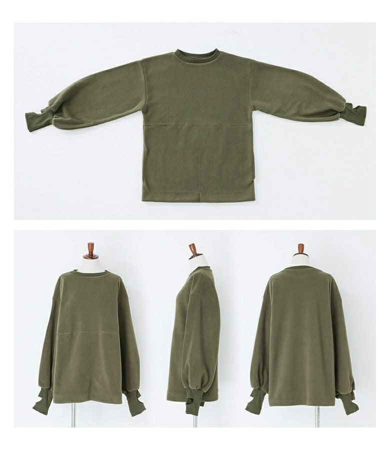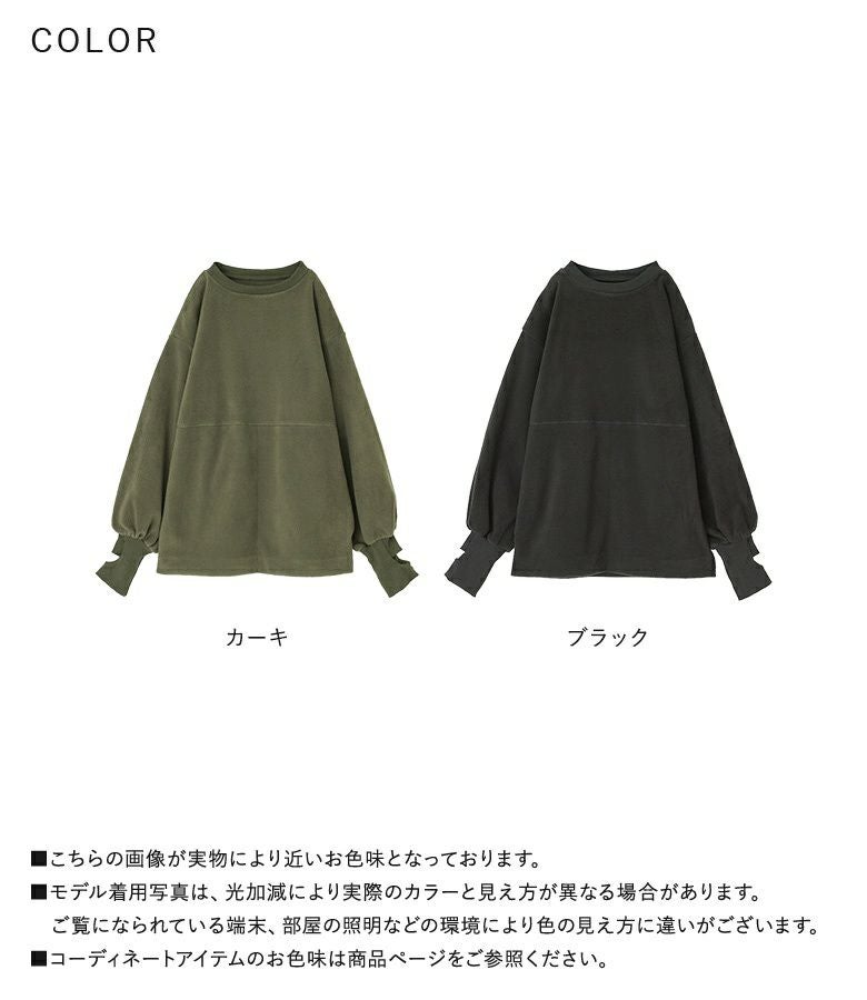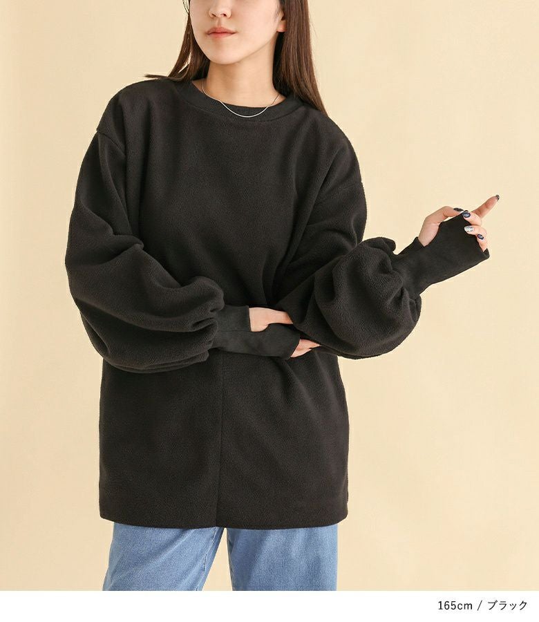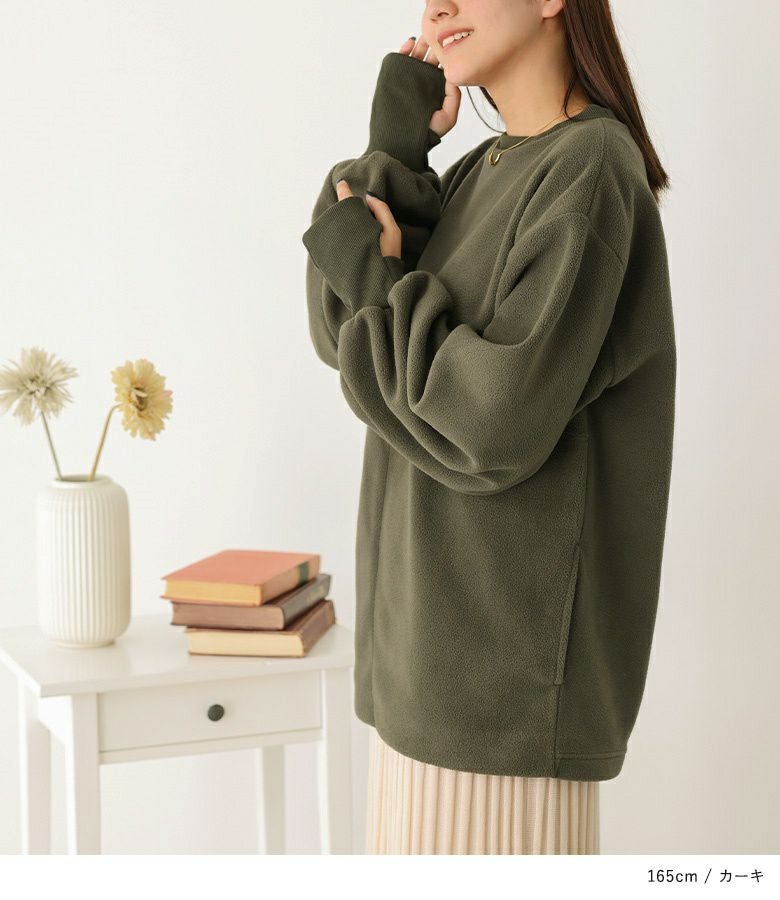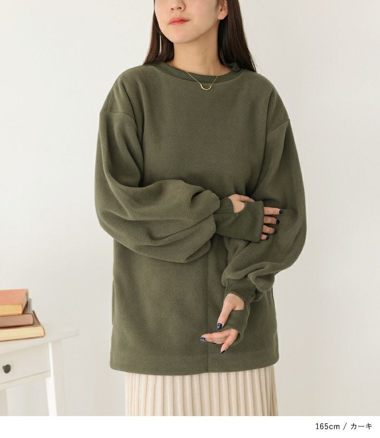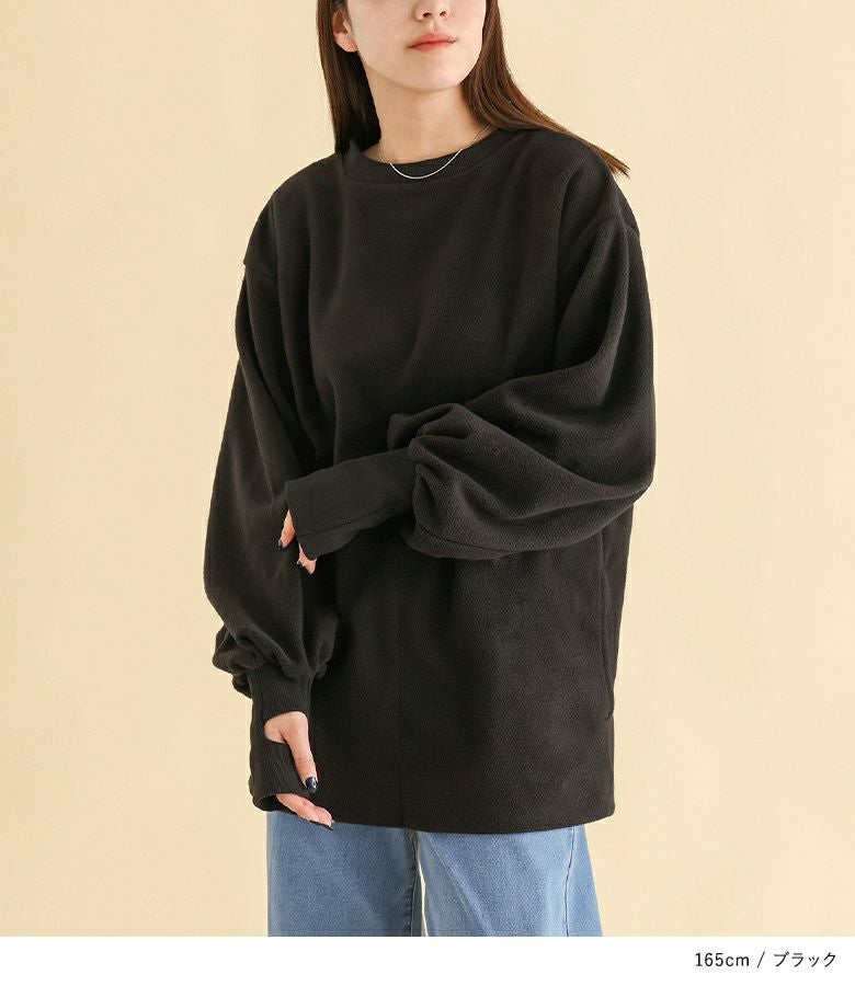 リラックス感のある着心地のボアフリーストップス。デザイン性のある指穴付きで着こなしにひと癖プラスします。