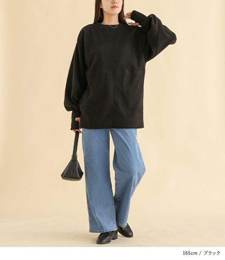 シンプルなデザインと快適な着用感でデイリー使いにおすすめ。パンツ・スカートどちらにも合わせやすく、柄アイテムに合わせても邪魔をしない、着回しに活躍する一着です。