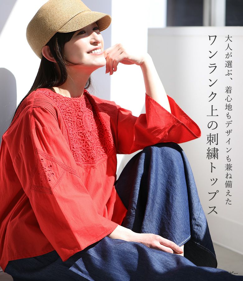『40%OFFセール★OUKA SELECTモチーフレース刺繍ブラウス』