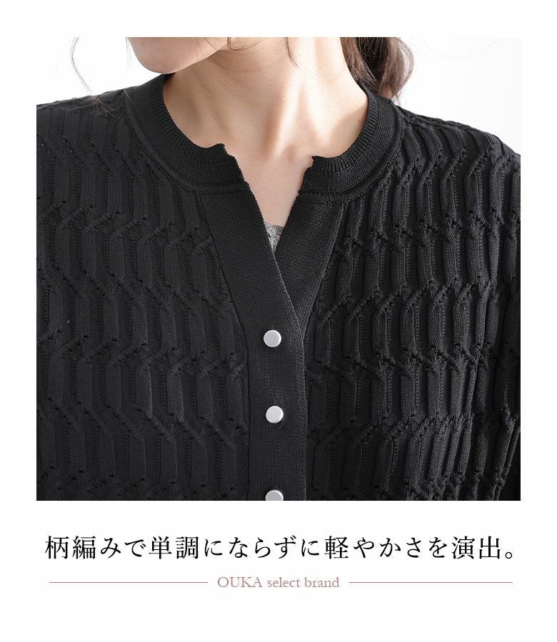 『50%OFFセール★OUKA SELECT柄編みドッキングニットカーディガン』