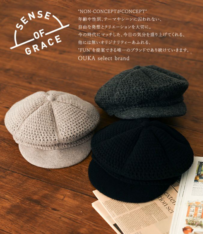 『50%OFFセール★OUKA SELECT 手編み風ニットキャスケット』