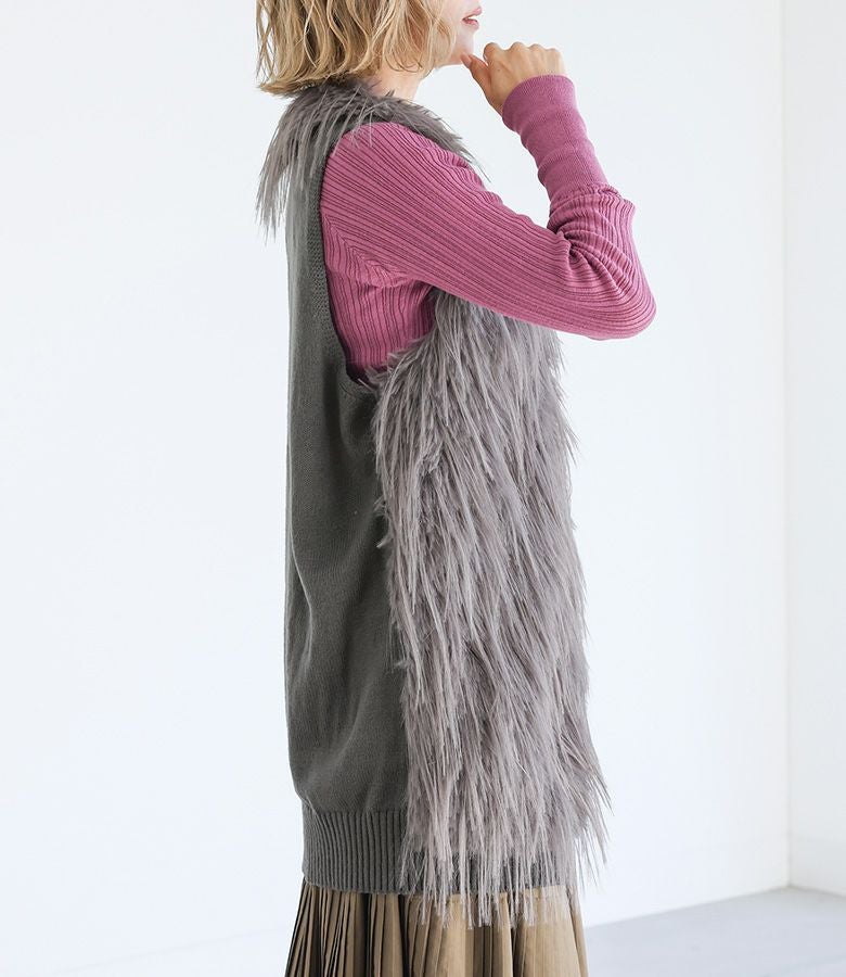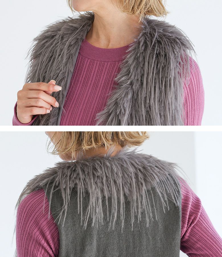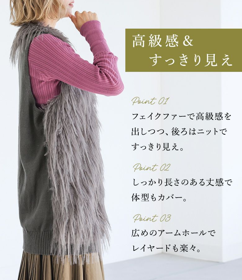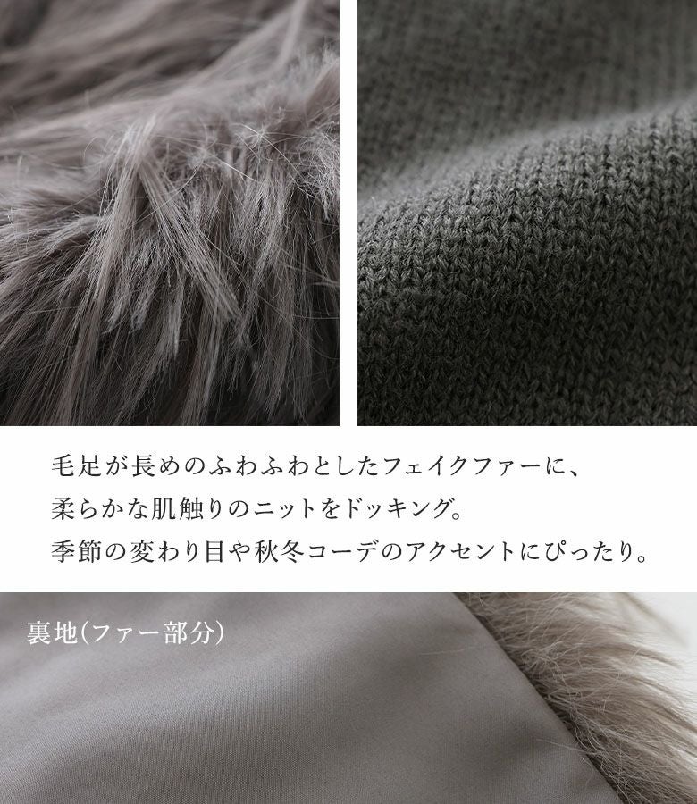ファーが気持ちよく、体型カバーしつつ後ろがニットでスッキリ見えます。