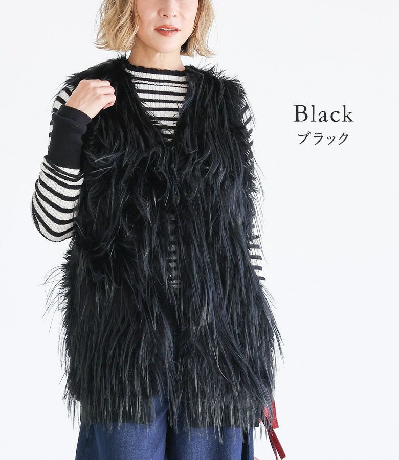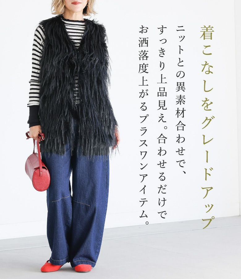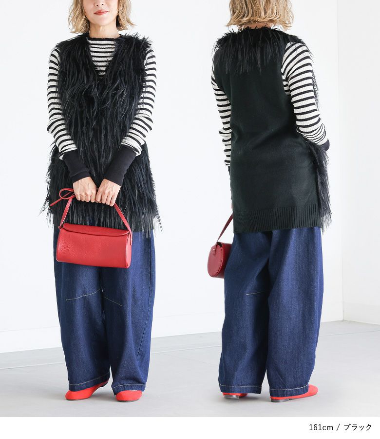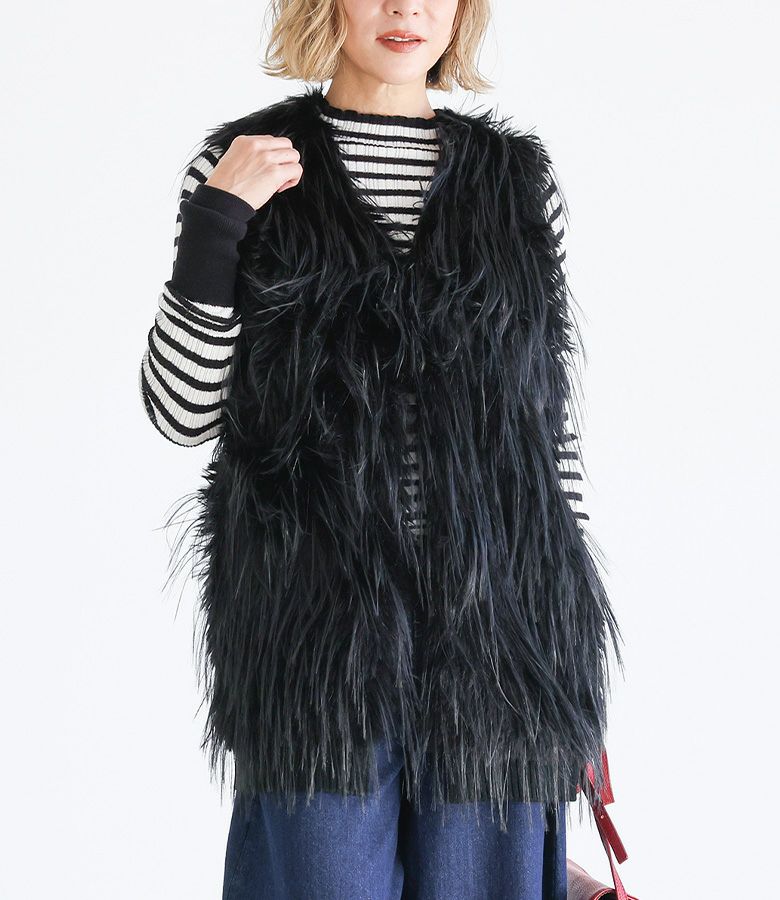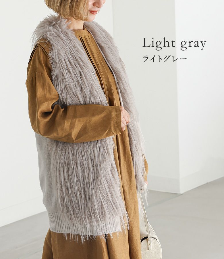 ファーが気持ちよく、体型カバーしつつ後ろがニットでスッキリ見えます。