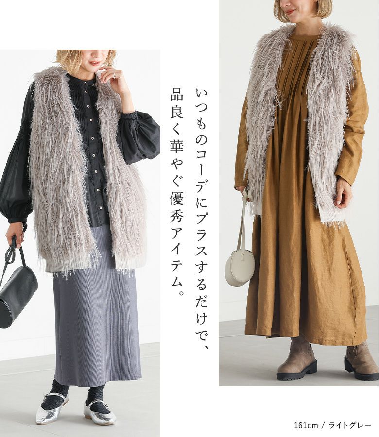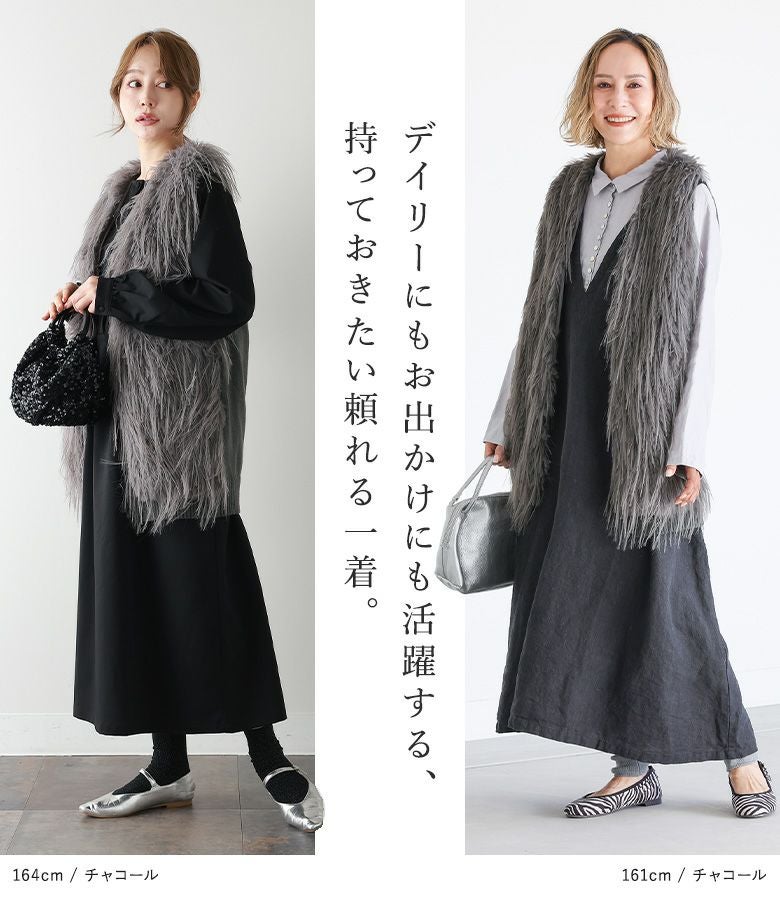 『30%OFFセール★OUKA SELECTフェイクファー切替ロングジレ』