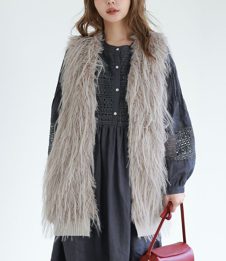 4. 『30%OFFセール★OUKA SELECTフェイクファー切替ロングジレ』※返品交換不可※【メール便不可】【30】