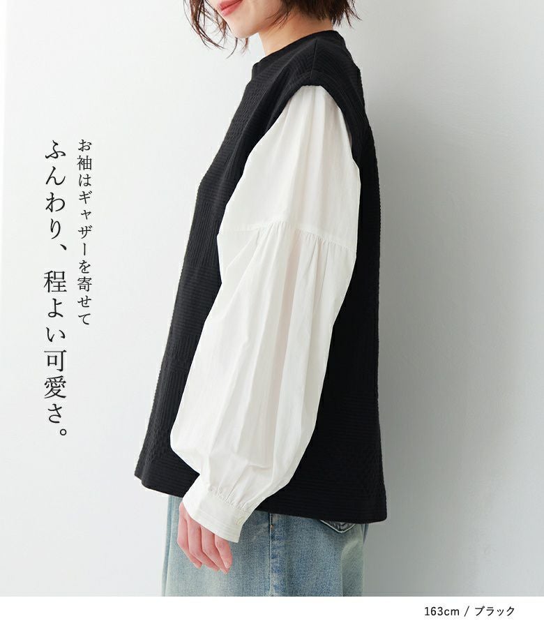 袖のシャツ生地部分は、ぽわんとしたシルエットなので窮屈さを全く感じませんでした。身頃部分は伸縮性もあり、着心地がとても楽です。