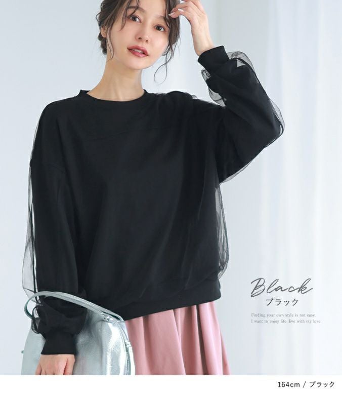 『50%OFFセール★OUKA SELECT チュールオーバー裏毛トップス』