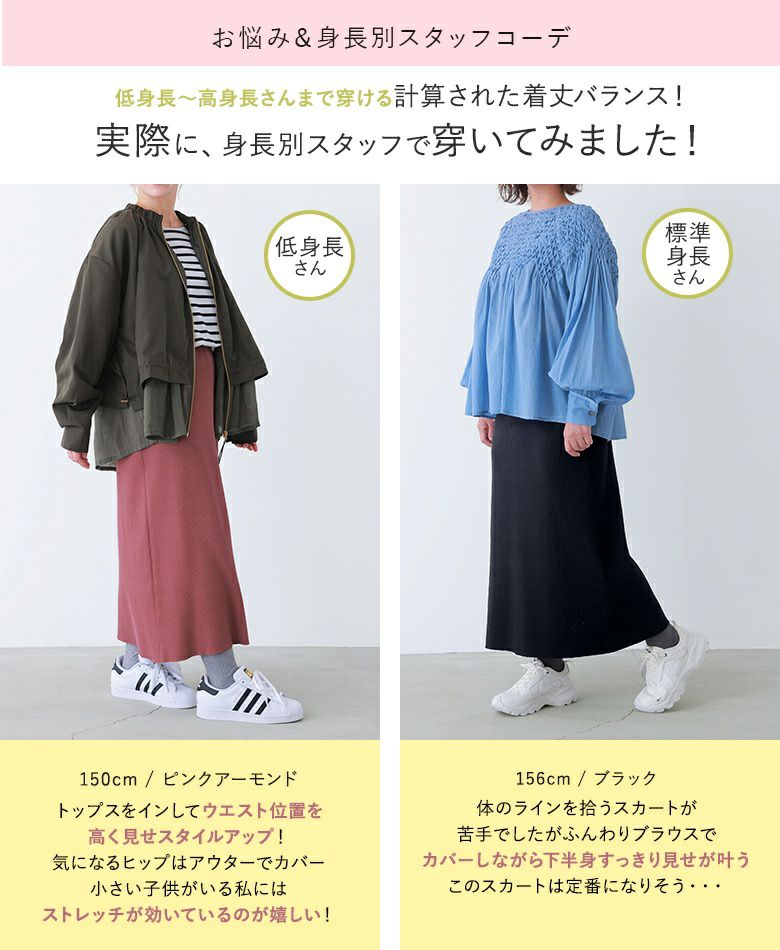 とても動きやすく、リブスカートですが体のラインを拾いすぎることなくすっきり着用できます。