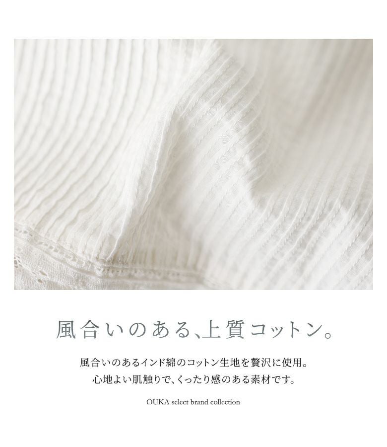 大人の女性がオフの時間を過ごす時、ナチュラルな優しい素材とともに繊細で上品さのある服を着ていたい・・・