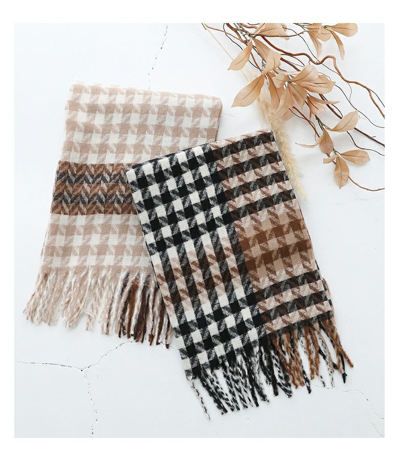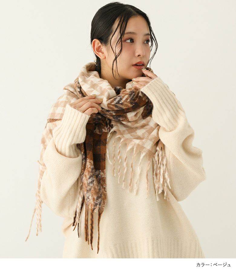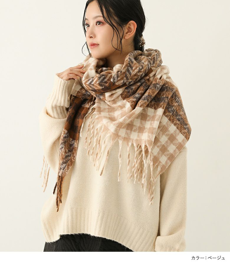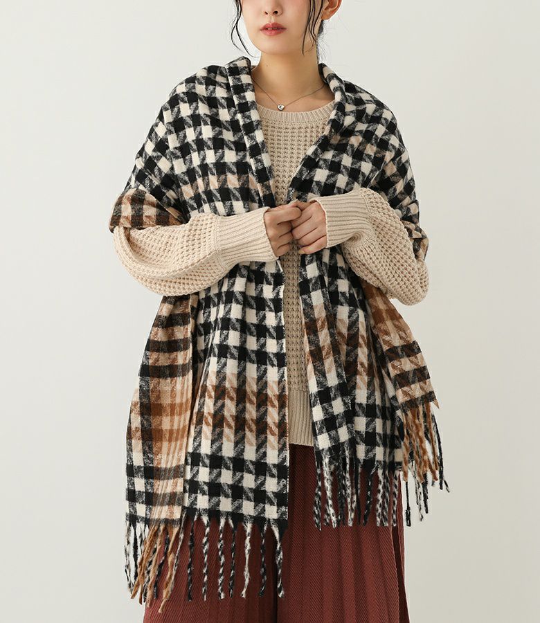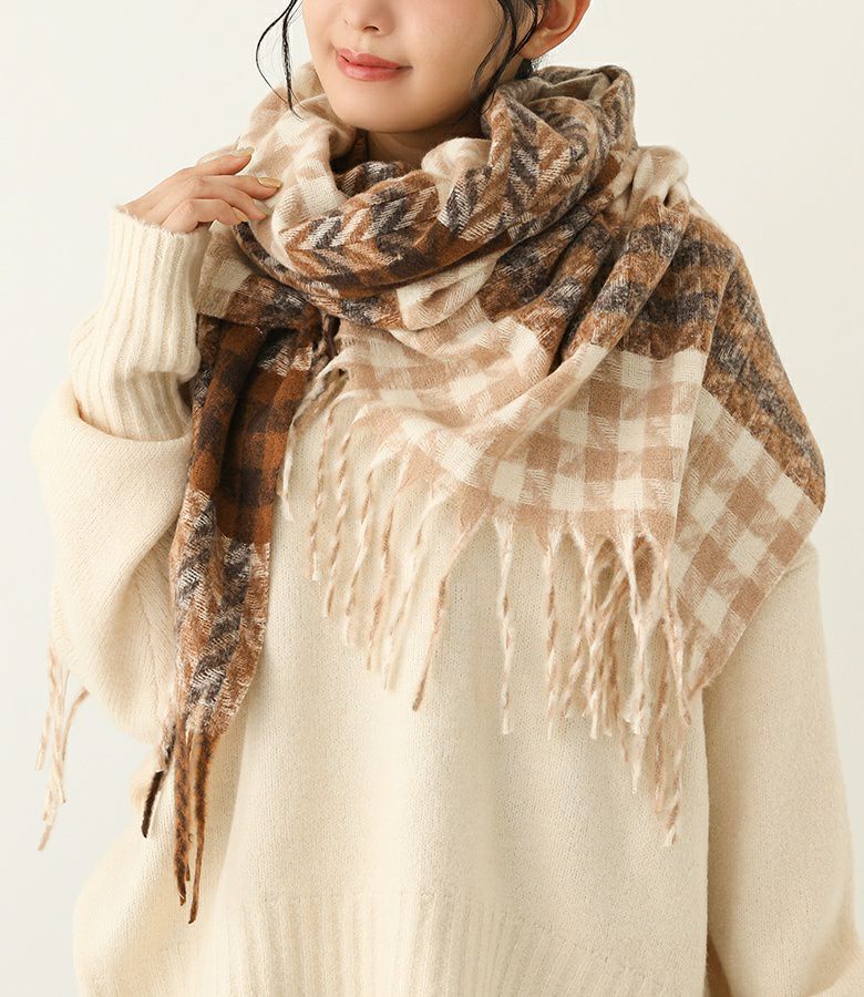 メリハリの効いたチェックが目を引くランダムグレンチェックストール。