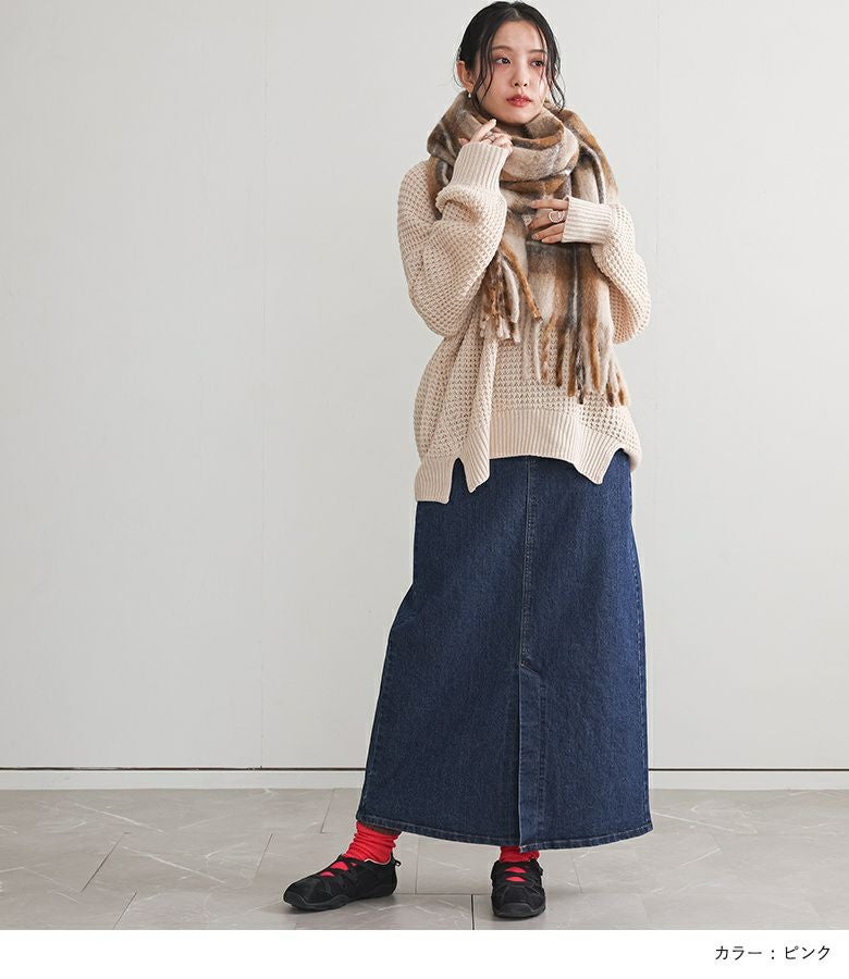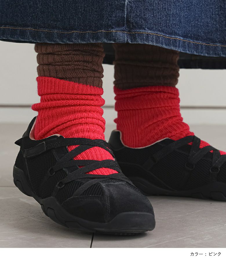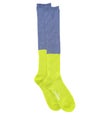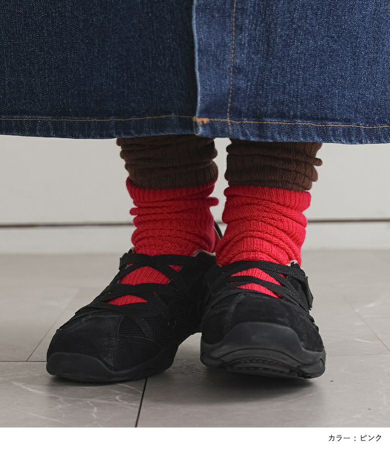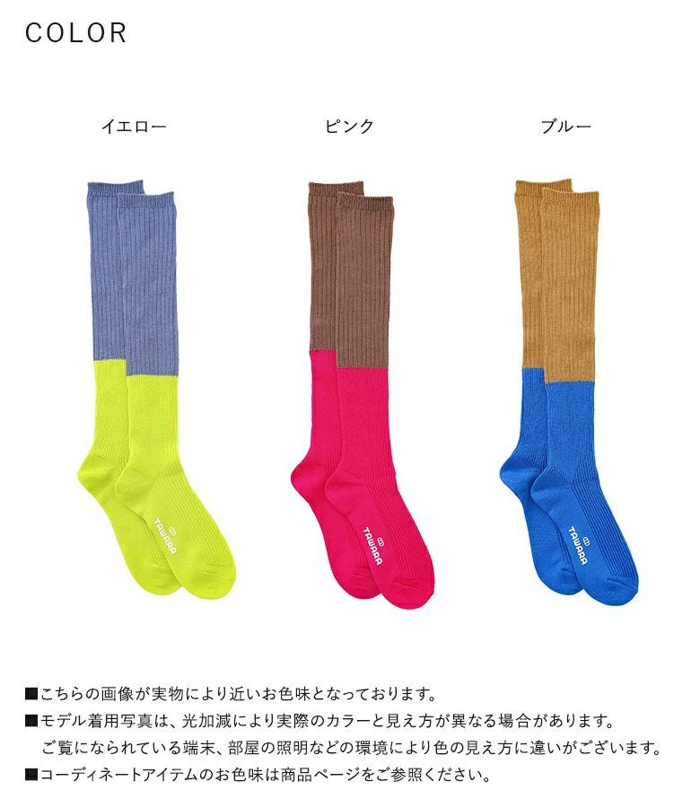 ぱっと目を引く配色のバイカラールーズハイソックス。