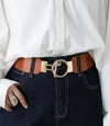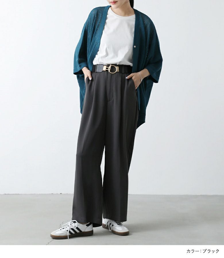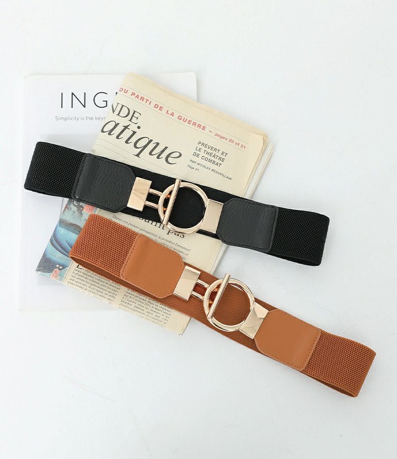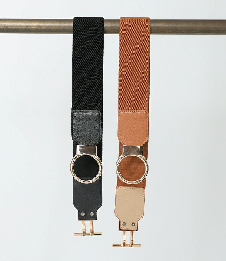 シンプルで合わせやすい、使いまわせるバックルデザインゴムベルト。