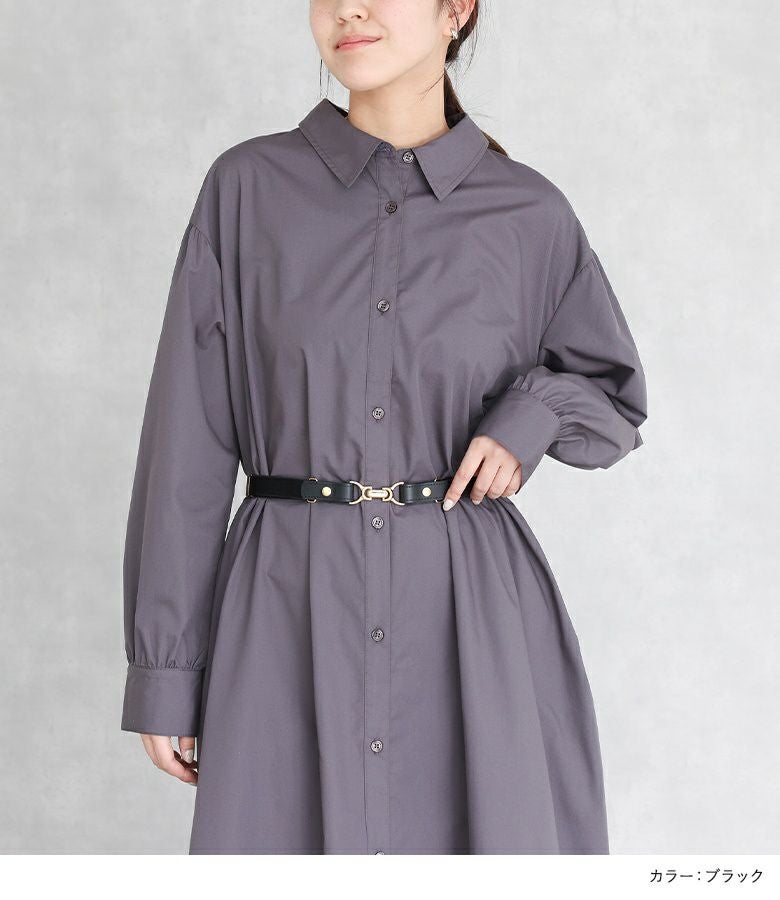 デイリー使いしやすいシンプルなデザインベルト。バックルは金具に引っ掛けて留める仕様で、付け外しがしやすいのもポイントです。