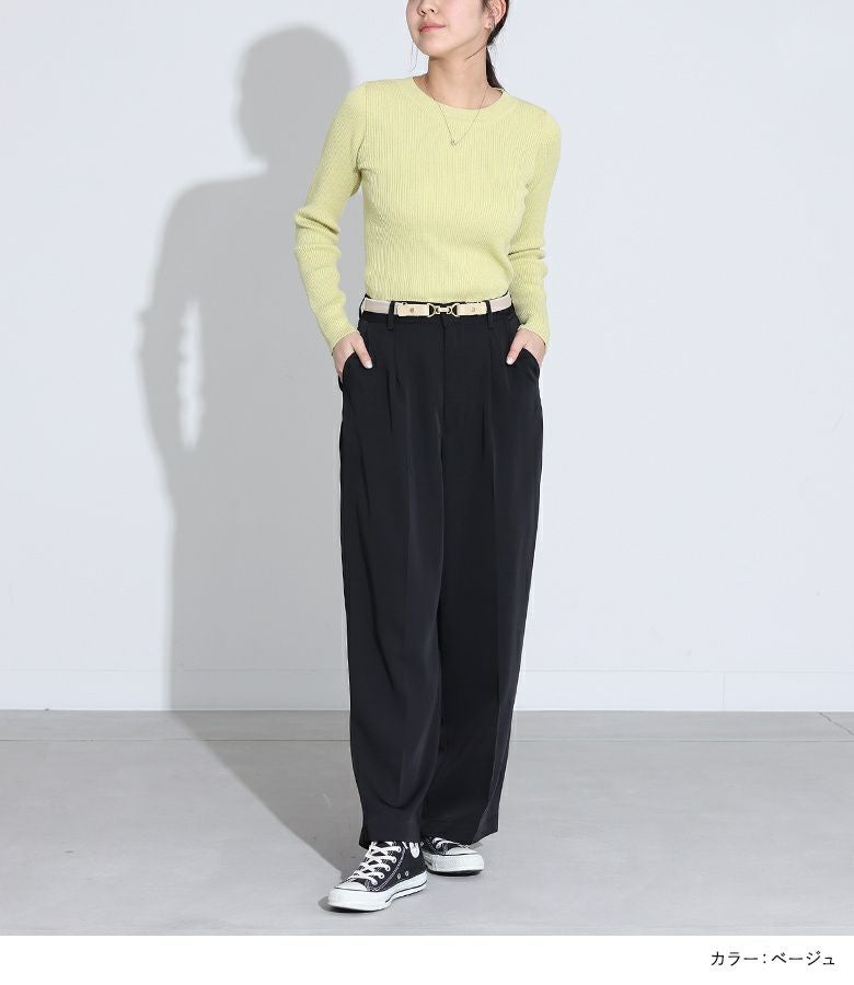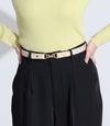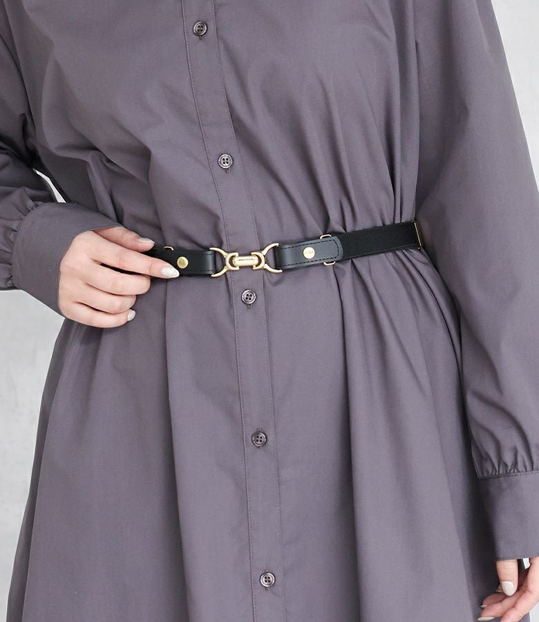 トップスをインしてバックル部分をポイントにするコーディネートがオススメです。シンプルなデザインなのでカジュアルな印象のデニムにも、綺麗めな印象のスラックスにもバランス良く合わせていただけます。シンプルなワンピースのウエストベルトとして使用し、アクセントを追加するスタイリングも◎
