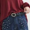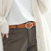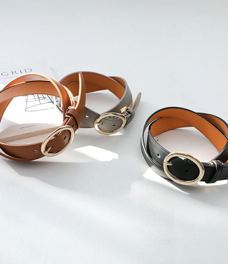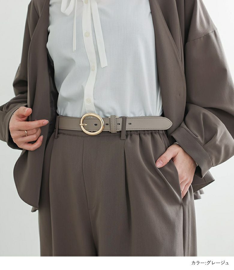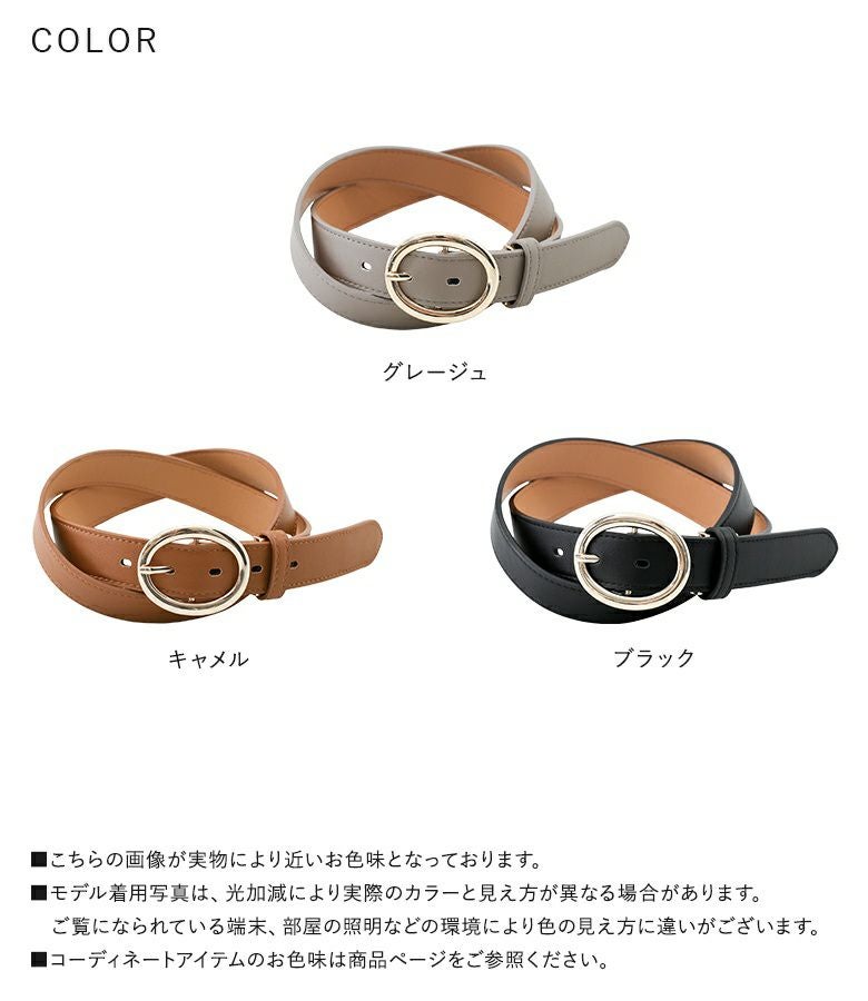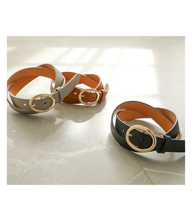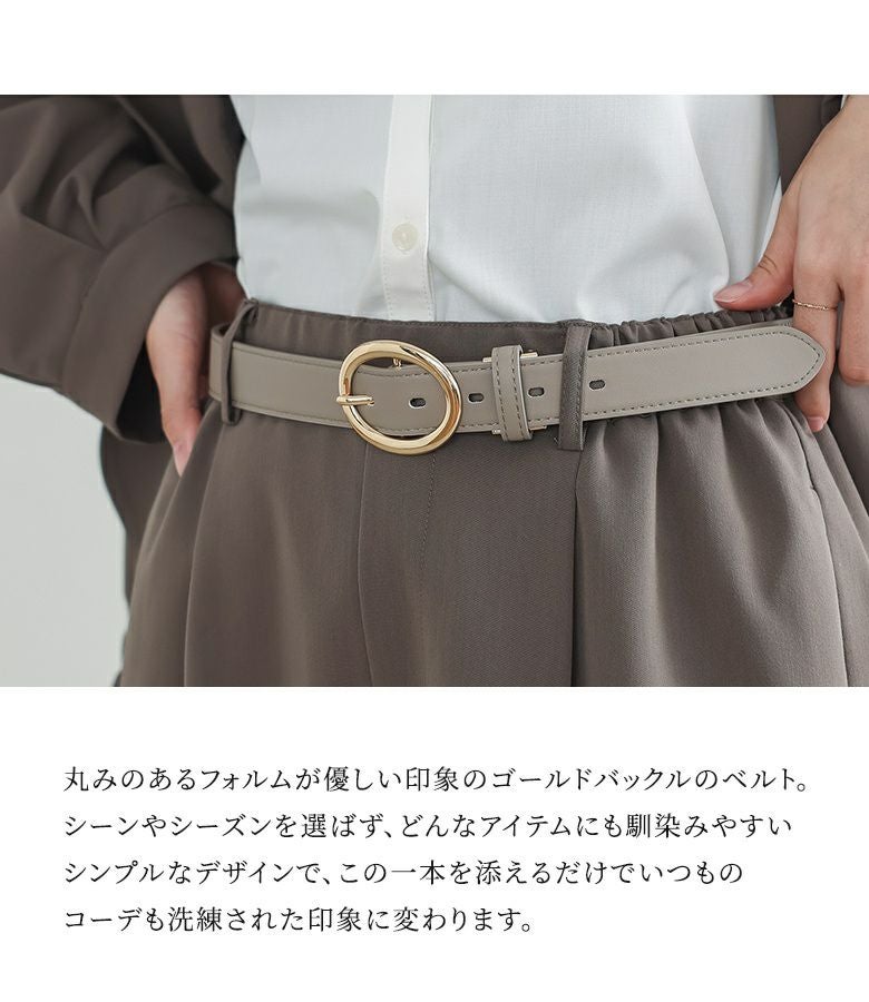 丸みのあるフォルムが優しい印象のゴールドバックルベルト。