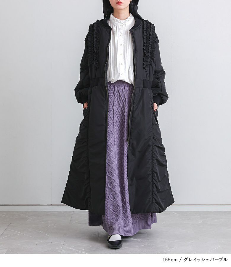 アイボリーを購入。身長160cmでくるぶしあたりのちょうど良い長さでした。着膨れもせず、とても可愛いです。