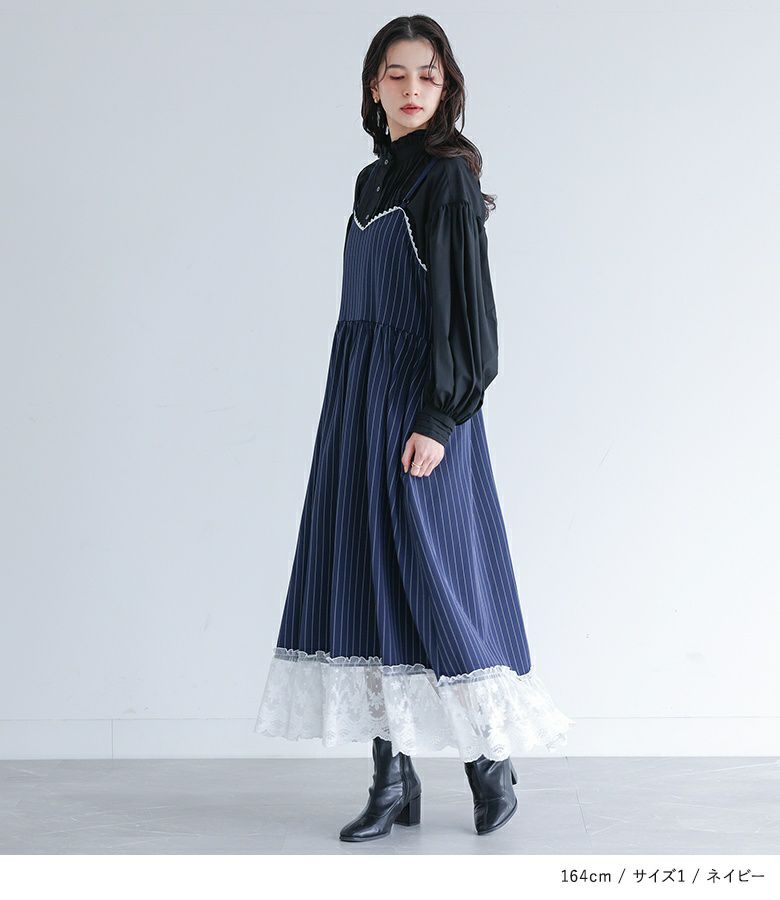 他の画像を見る 選べる2サイズ展開!裾を繊細なレースで切り替えたピンストライプ柄のキャミワンピース。 『somari imaginationピンストライプキャミワンピース』【メール便不可】【20】 ¥ 6,980 税込 (0)