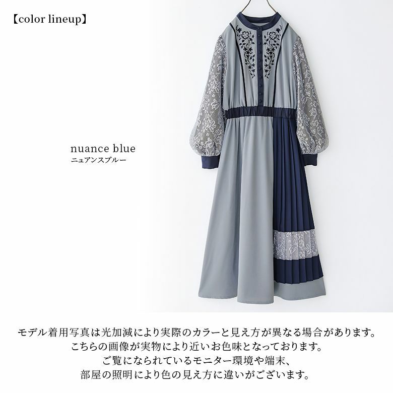 選べるM~3Lサイズ展開!ニュアンス漂う異素材切替レースワンピース。