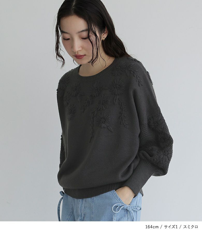 他の画像を見る アーガイル柄のジャカードニットに花柄刺繍を組み合わせたニットプルオーバー。 『somari imagination花柄刺繍アーガイルジャカードニット』【メール便不可】【30】 ¥ 7,980 税込 (0)