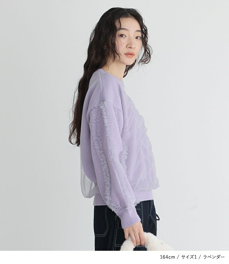 他の画像を見る 【50%OFF】選べる2サイズ展開!ニットの上にチュールを重ねた、異素材デザインのトップス。 『somari imaginationチュールレイヤーニット』※返品交換不可※【メール便不可】【30】 定価 ¥ 7,980 のところ ¥ 3,989 税込 販売期間 2026/02/05 0:00 〜 2026/02/11 23:59 5.00 (1)