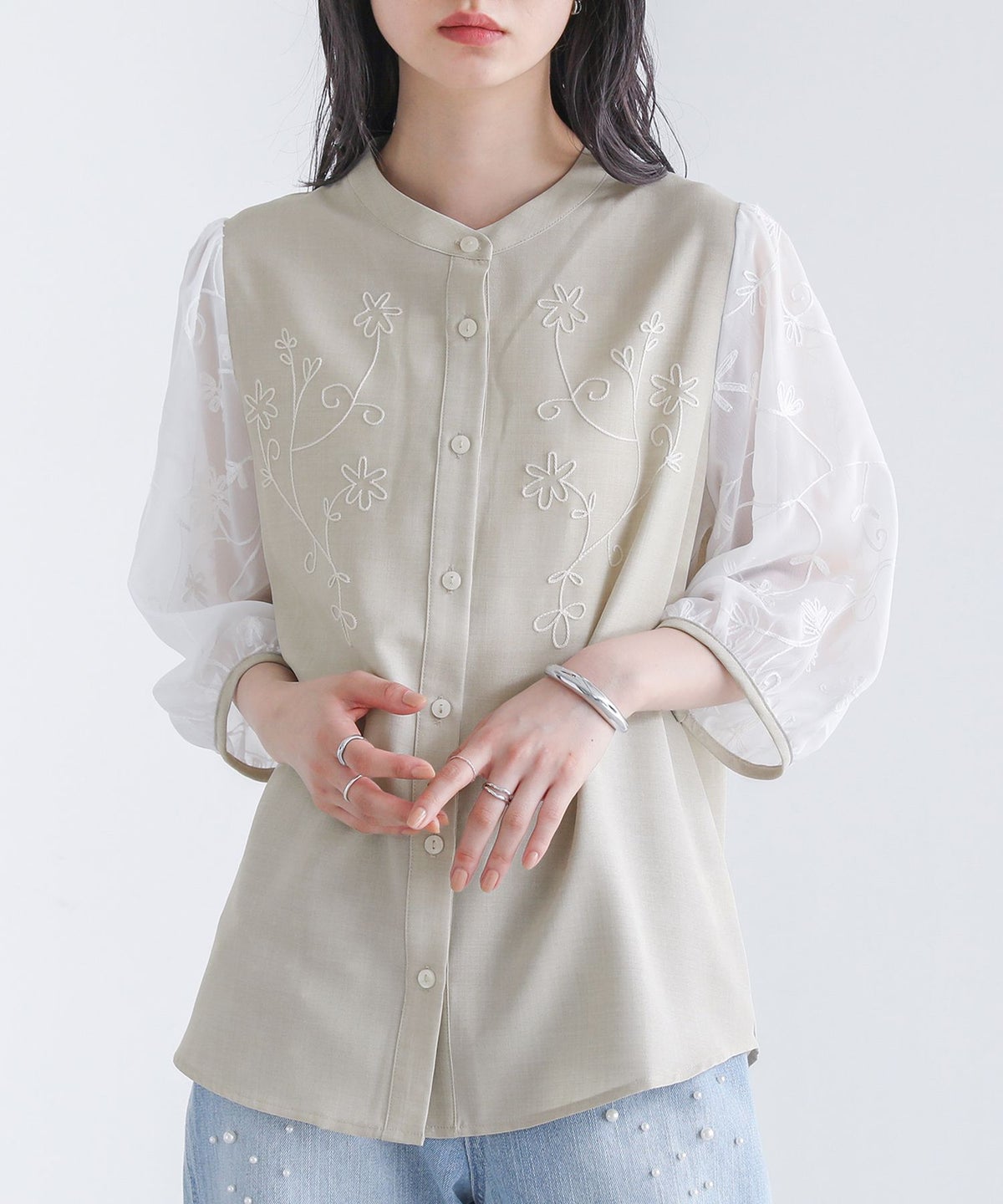 他の画像を見る 選べる2サイズ展開!花柄の刺繍を施した、清涼感のある異素材ブラウス。 【新色登場】『somari imaginationシアースリーブ刺繍ブラウス』※メール便可※【10】 ¥ 5,980 税込 SOLD OUT 販売開始前です。 販売期間 2026/04/05 10:00 〜 2027/03/25 23:59 (0)