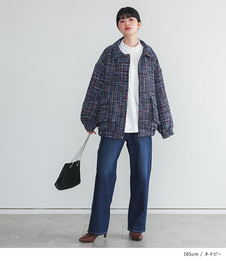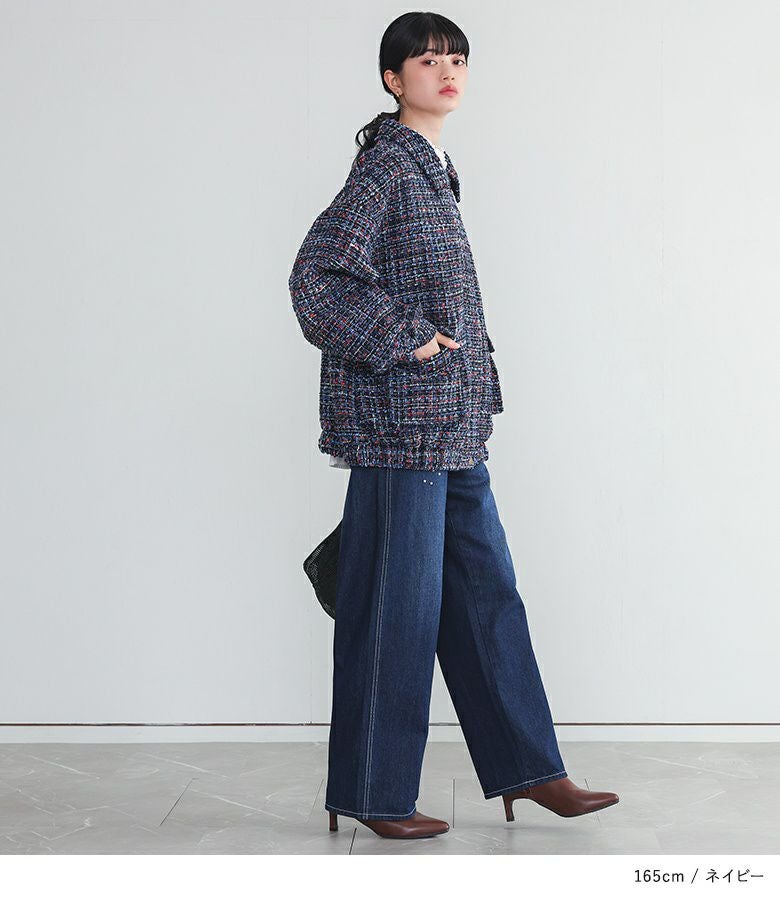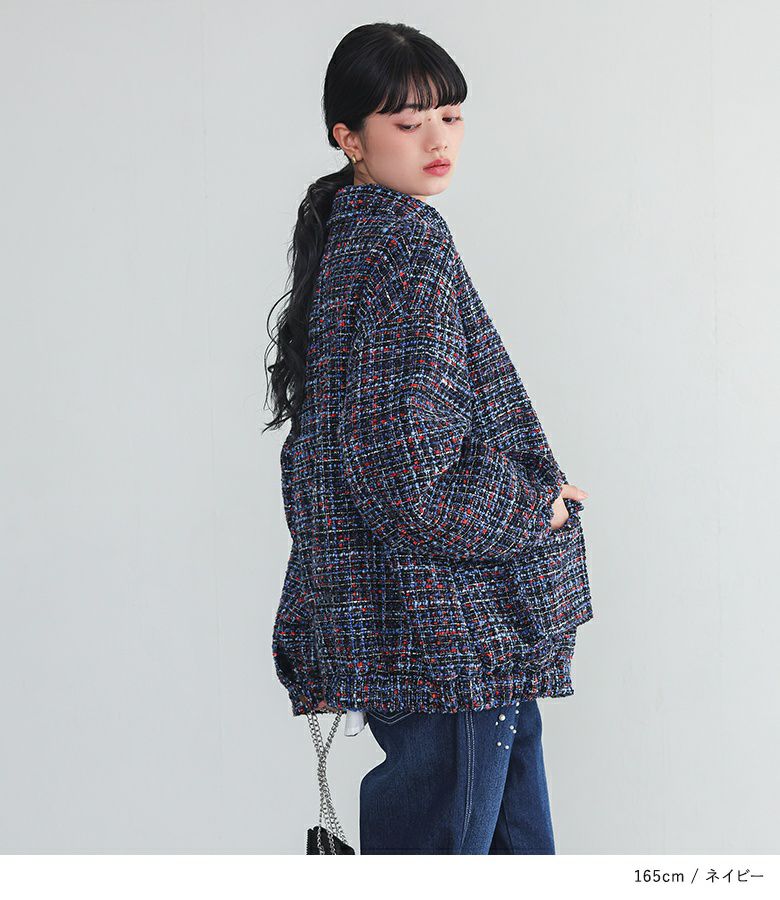 華やかなファンシーツイード生地を使用した襟付きブルゾン。