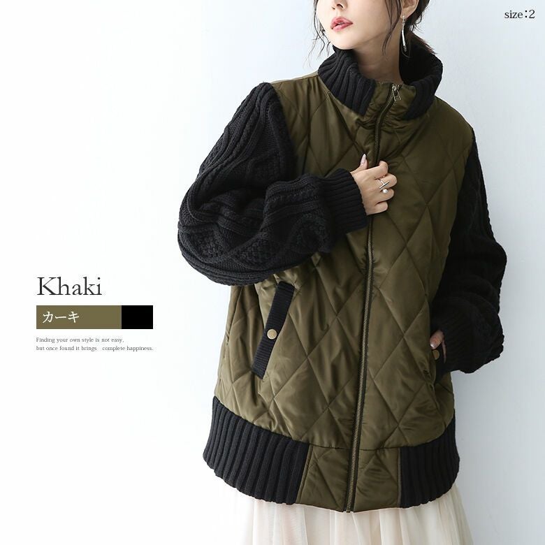 選べるM~3Lサイズ展開!個性派ニット×キルティングブルゾン。