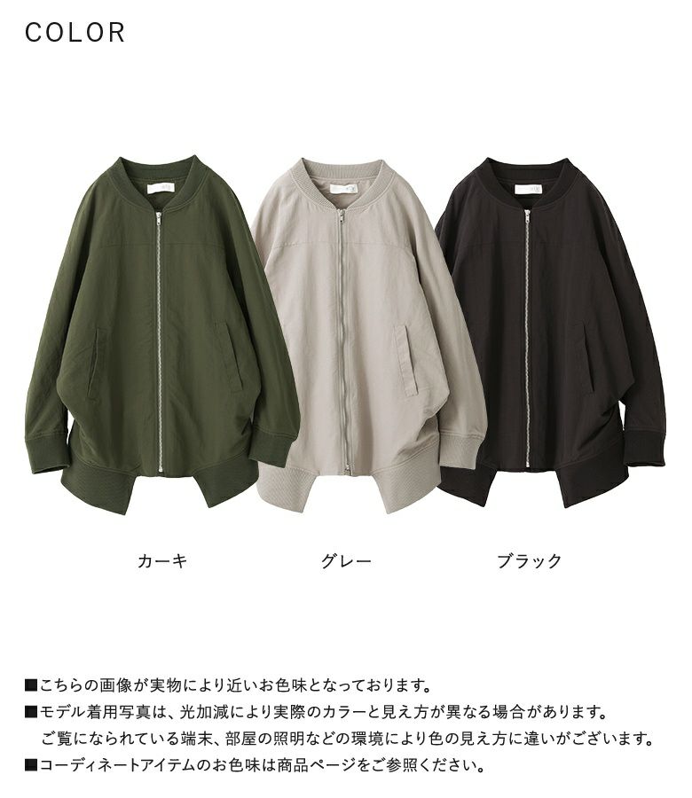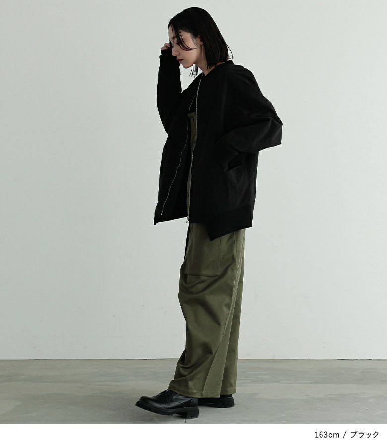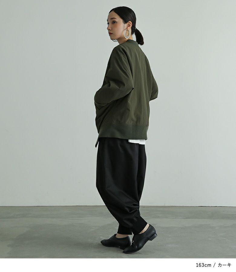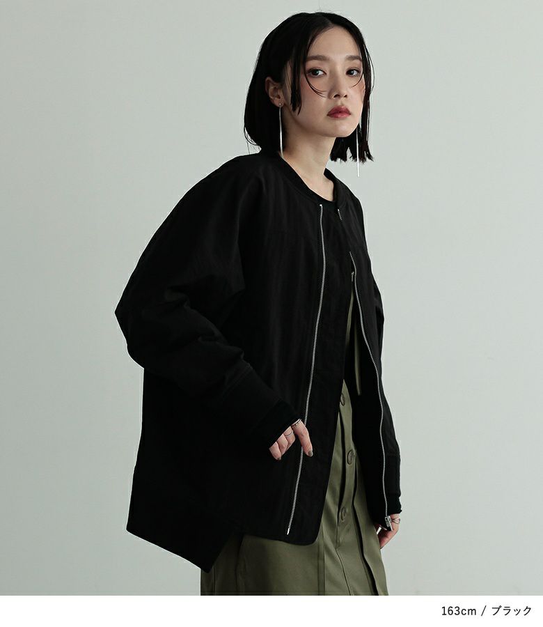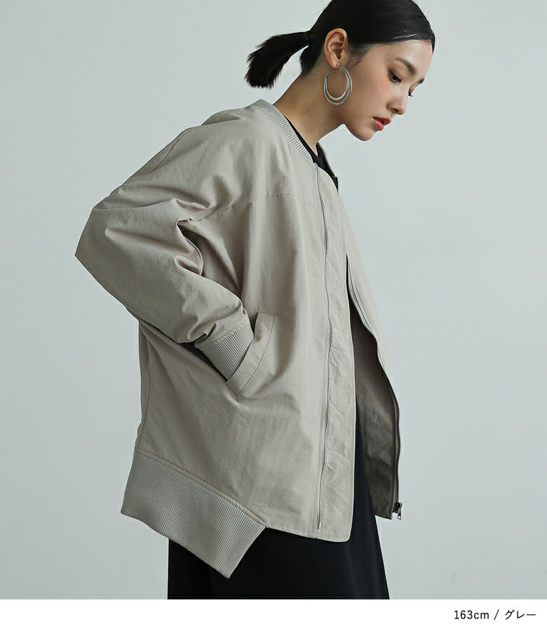 デザイン性の高い袖の付け方と裾のリブが特徴の、MA-1をモチーフにしたショートブルゾン。