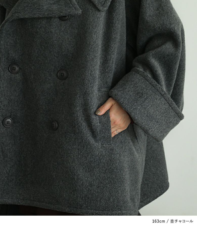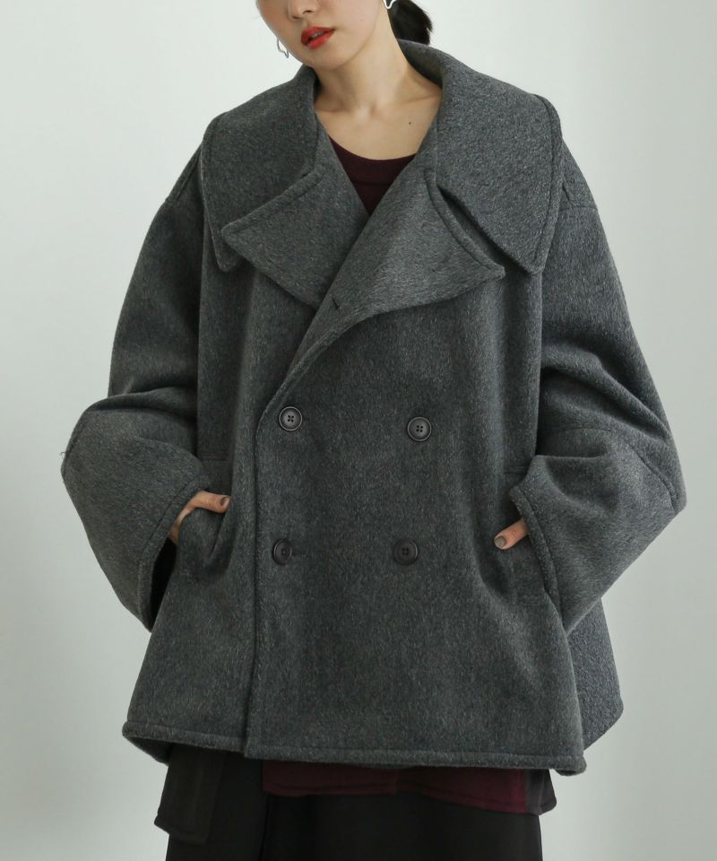 ピーコートをベースにした、幅広の袖が特徴的なダブルコート。