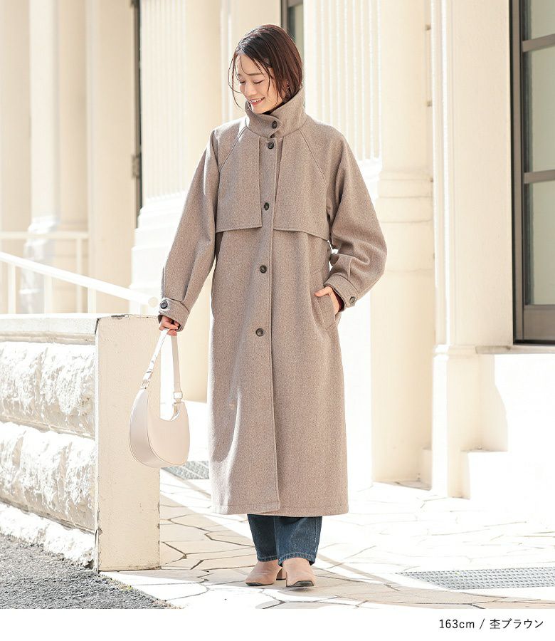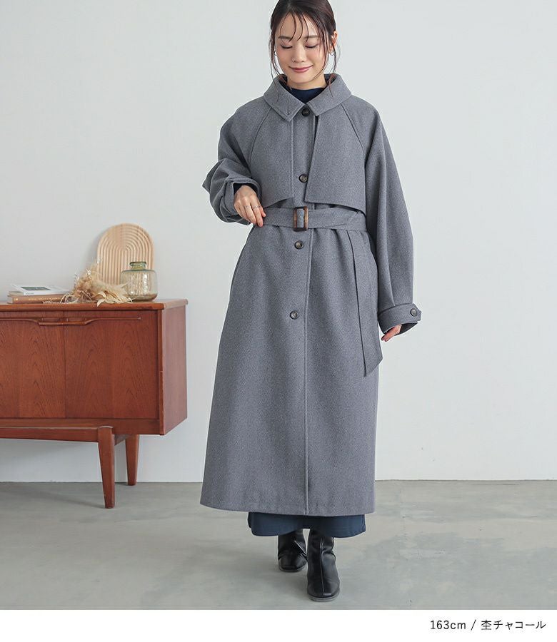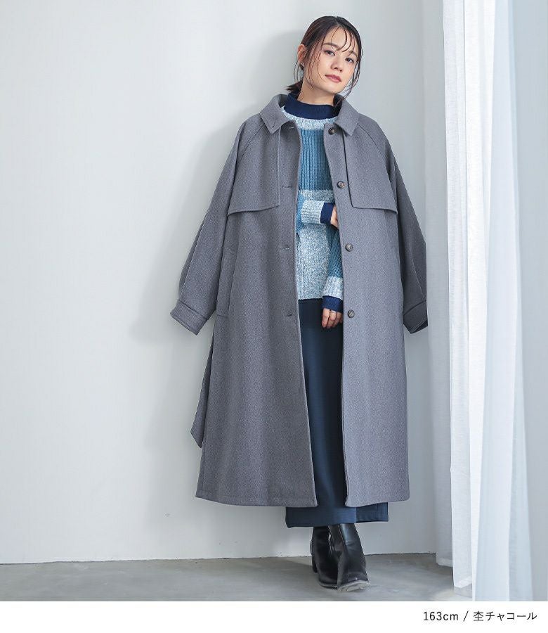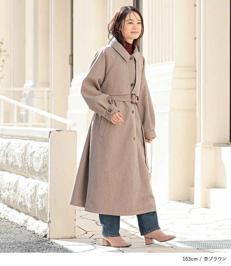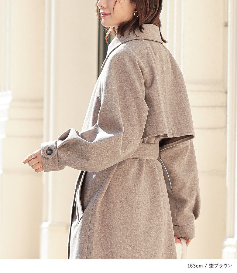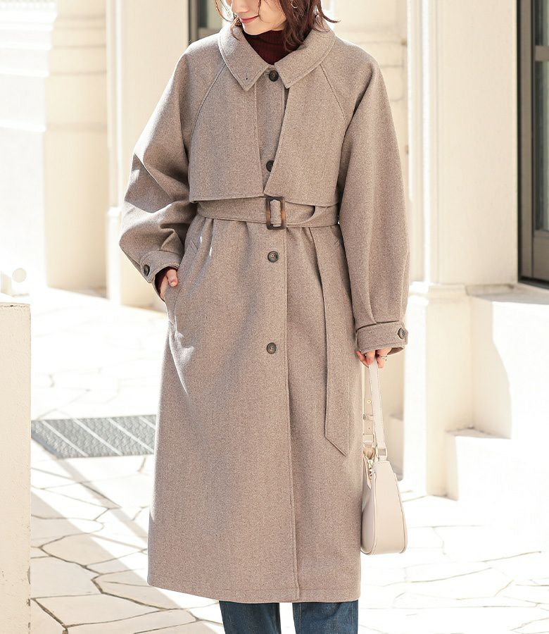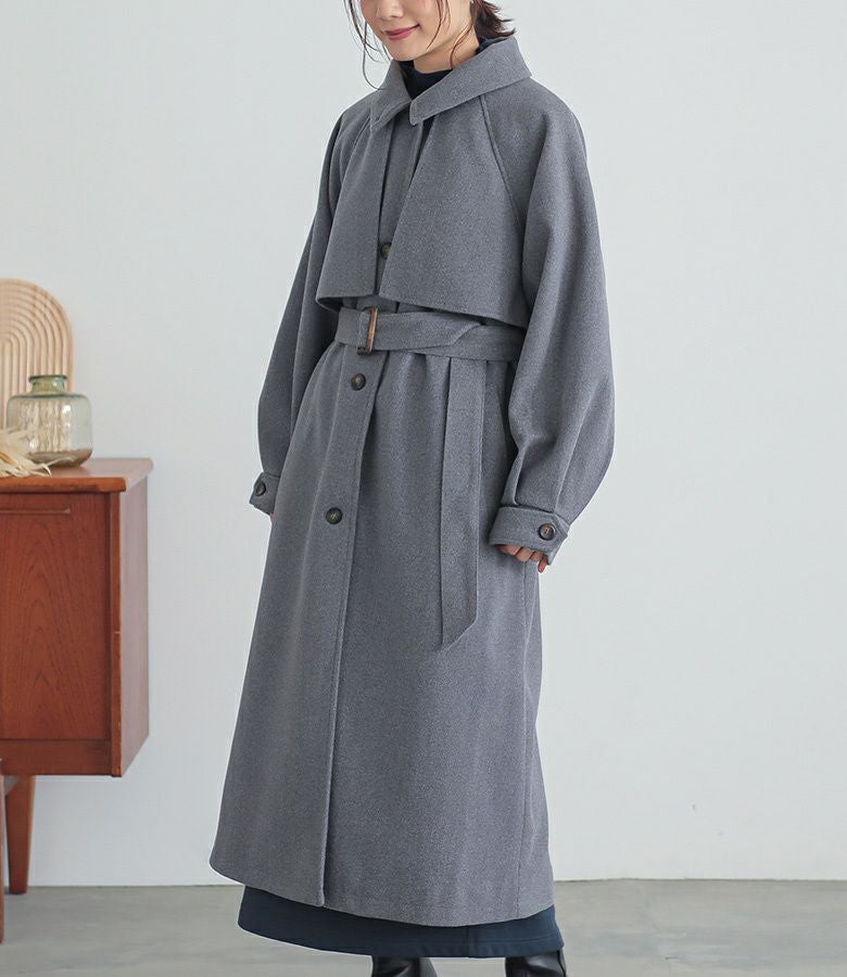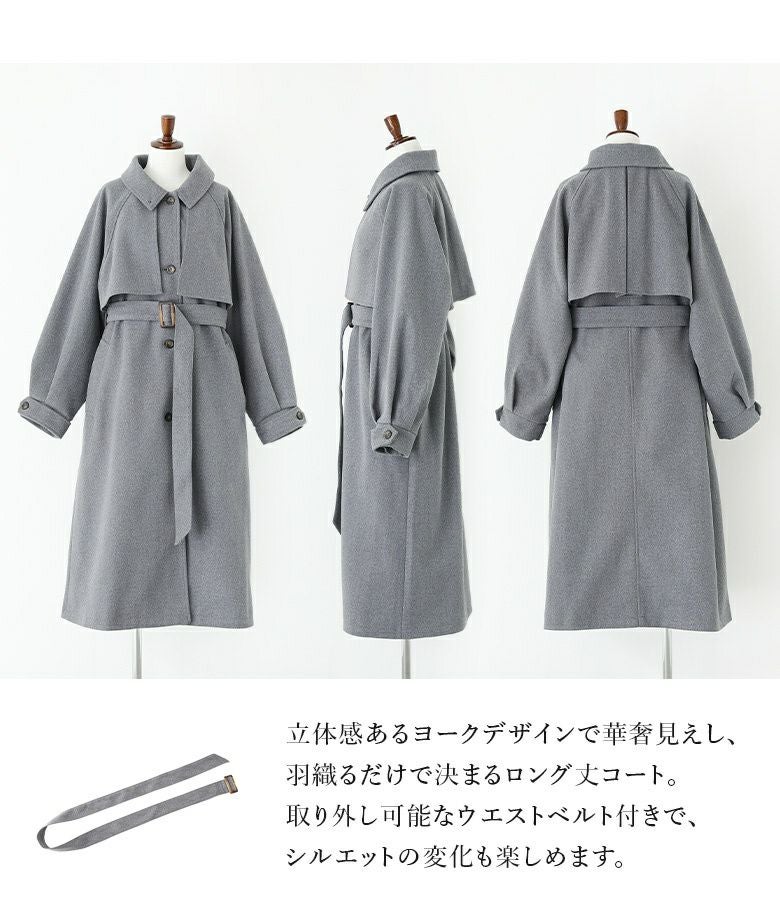 立体感あるヨークデザインで華奢見え♪羽織るだけで決まるロング丈コート。